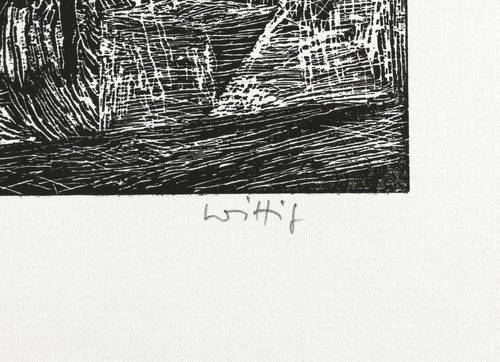 Werner Wittig (1930 Chemnitz - 2013 Radebeul). Deutscher Maler und Grafiker. 1952-57 Studium der Grafik an der HfbK Dresden bei Erich Fraaß, Hans Theo Richter und Max Schwimmer. Freundschaft mit Claus Weidensdorfer. 1957 Aufnahme in den Verband Bildender Künstler der DDR. Zahlreiche Einzelausstellungen z.B. in der Galerie Kühl in Dresden. Hans-Theo-Richter-Preis der Sächsischen Akademie der Künste in Dresden. Landschaft und Stillleben sind die zwei Hauptthemen des Künstlers, die meist mittels des Holzrisses oder Farbholzrisses umgesetzt werden. Typisch dabei sind die sichtbaren natürlichen Strukturen des Holzes, die, eingearbeitet in die Komposition, den Grafiken eine organische Lebendigkeit verleihen.
