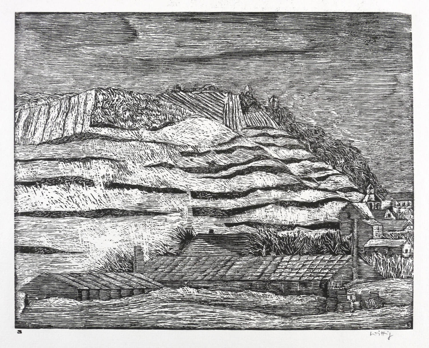 Werner Wittig (1930 Chemnitz - 2013 Radebeul). Deutscher Maler und Grafiker. 1952-57 Studium der Grafik an der HfbK Dresden bei Erich Fraaß, Hans Theo Richter und Max Schwimmer. Freundschaft mit Claus Weidensdorfer. 1957 Aufnahme in den Verband Bildender Künstler der DDR. Zahlreiche Einzelausstellungen z.B. in der Galerie Kühl in Dresden. Hans-Theo-Richter-Preis der Sächsischen Akademie der Künste in Dresden. Landschaft und Stillleben sind die zwei Hauptthemen des Künstlers, die meist mittels des Holzrisses oder Farbholzrisses umgesetzt werden. Typisch dabei sind die sichtbaren natürlichen Strukturen des Holzes, die, eingearbeitet in die Komposition, den Grafiken eine organische Lebendigkeit verleihen.