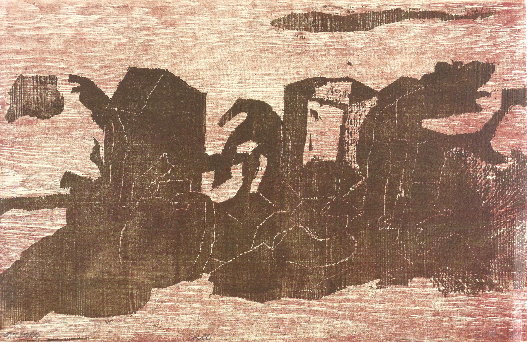 2000. Farbholzriss, in 2 Farben, auf leichtem getöntem Hahnemühle. – Originale Künstlergrafik, von Werner Wittig. – Auflage Exemplar Nr. 91/100. – 31,4 x 48,0 cm (Darstellung / Blatt).