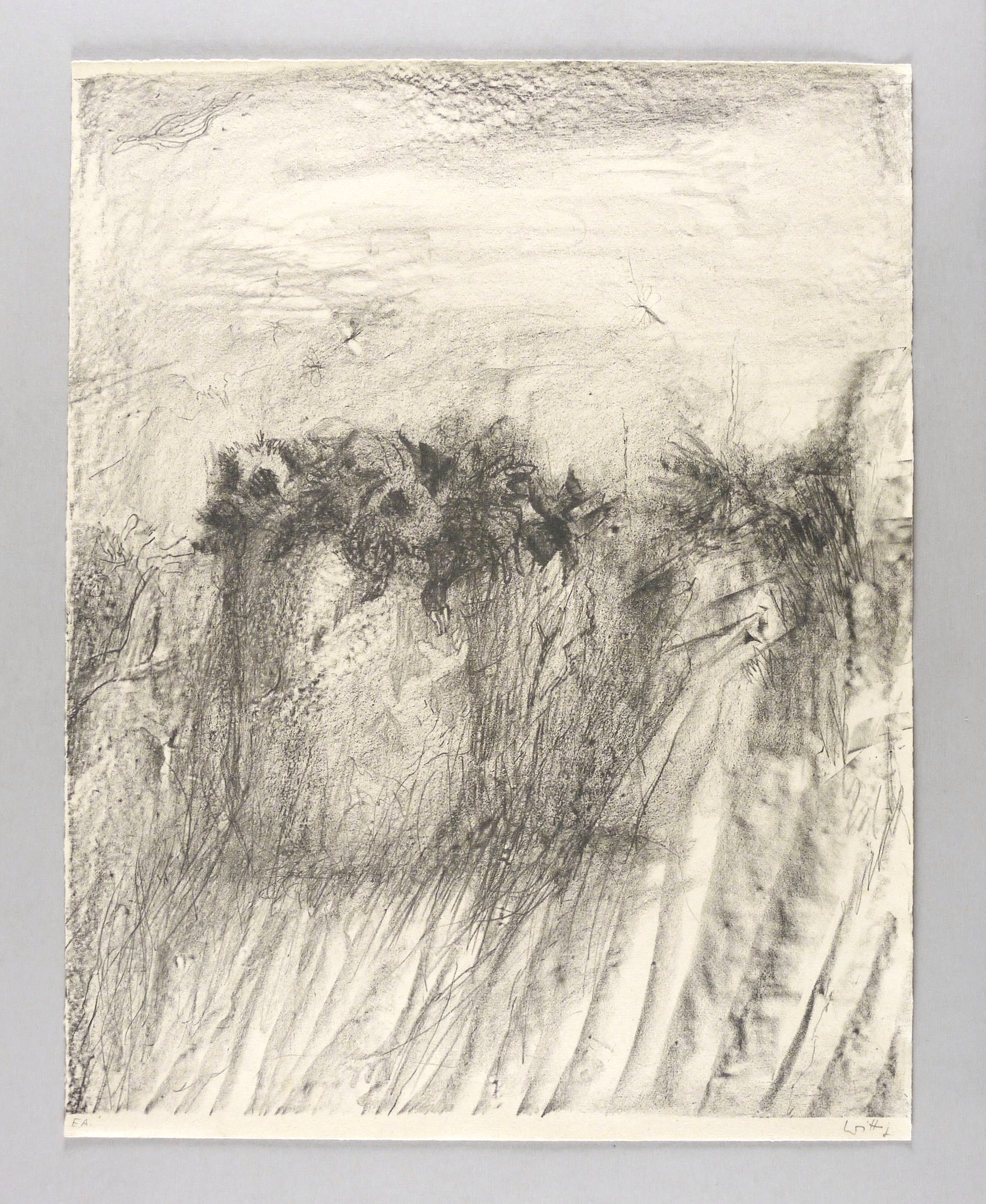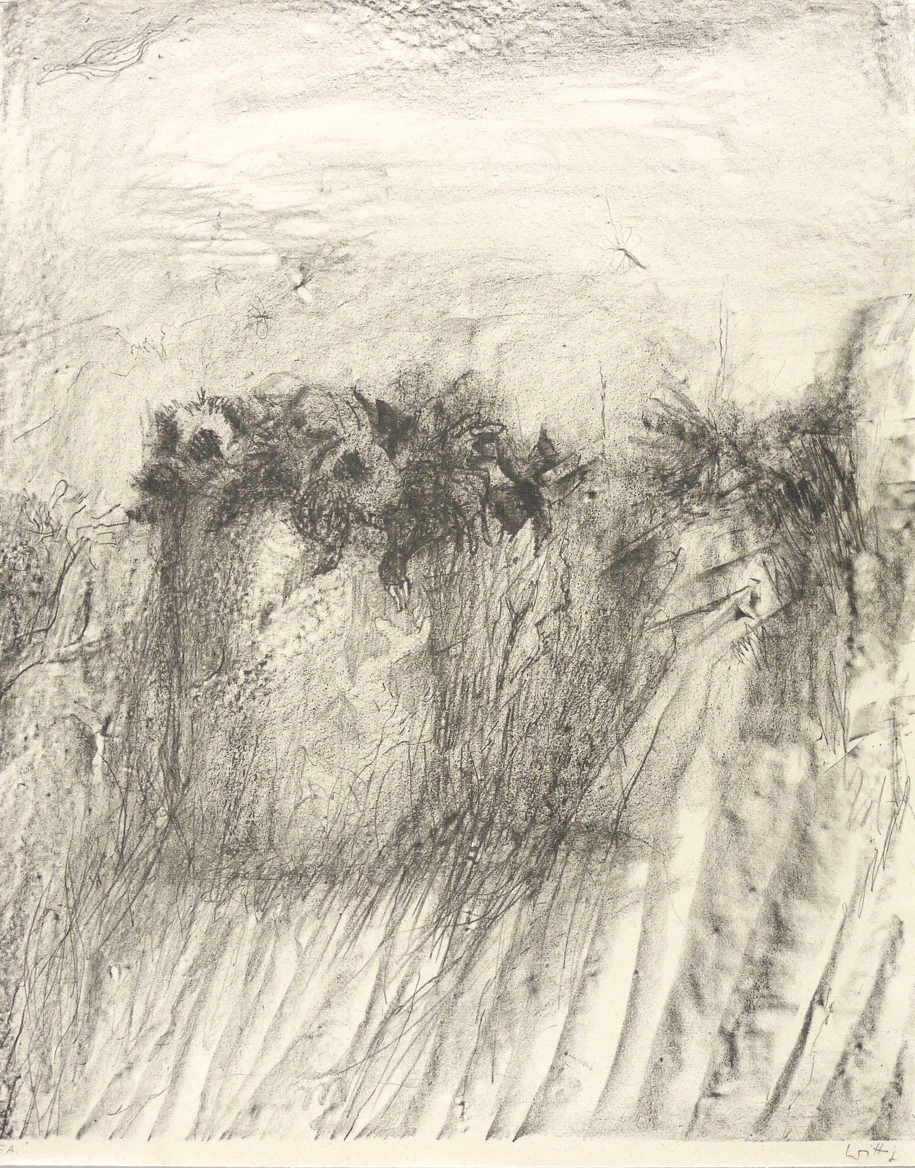 1984. Zinkografie / Kreidezinkografie, in Schwarz, auf hellgelbem rauem Maschinenbütten. – Originale Künstlergrafik, von Werner Wittig. – Künstlerexemplar (e.a.). – 60 x 48 cm (Blatt), 57,6 x 46,6 cm (Darstellung / Druckbild).