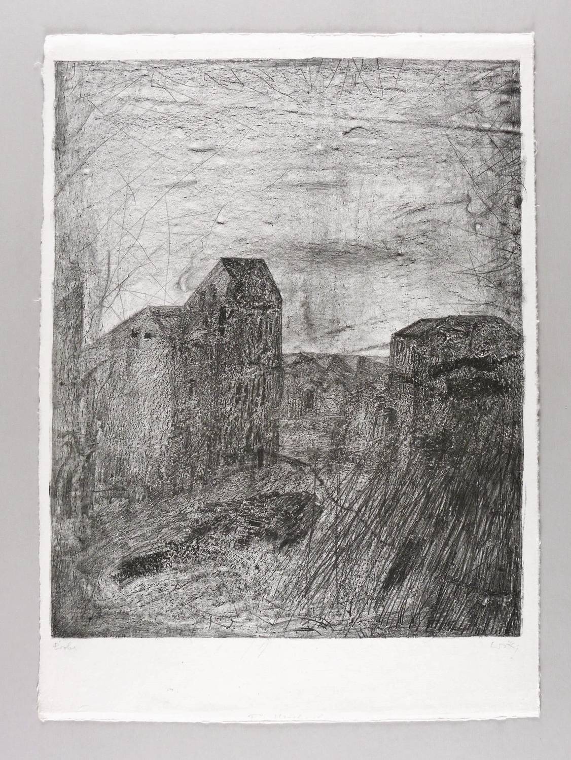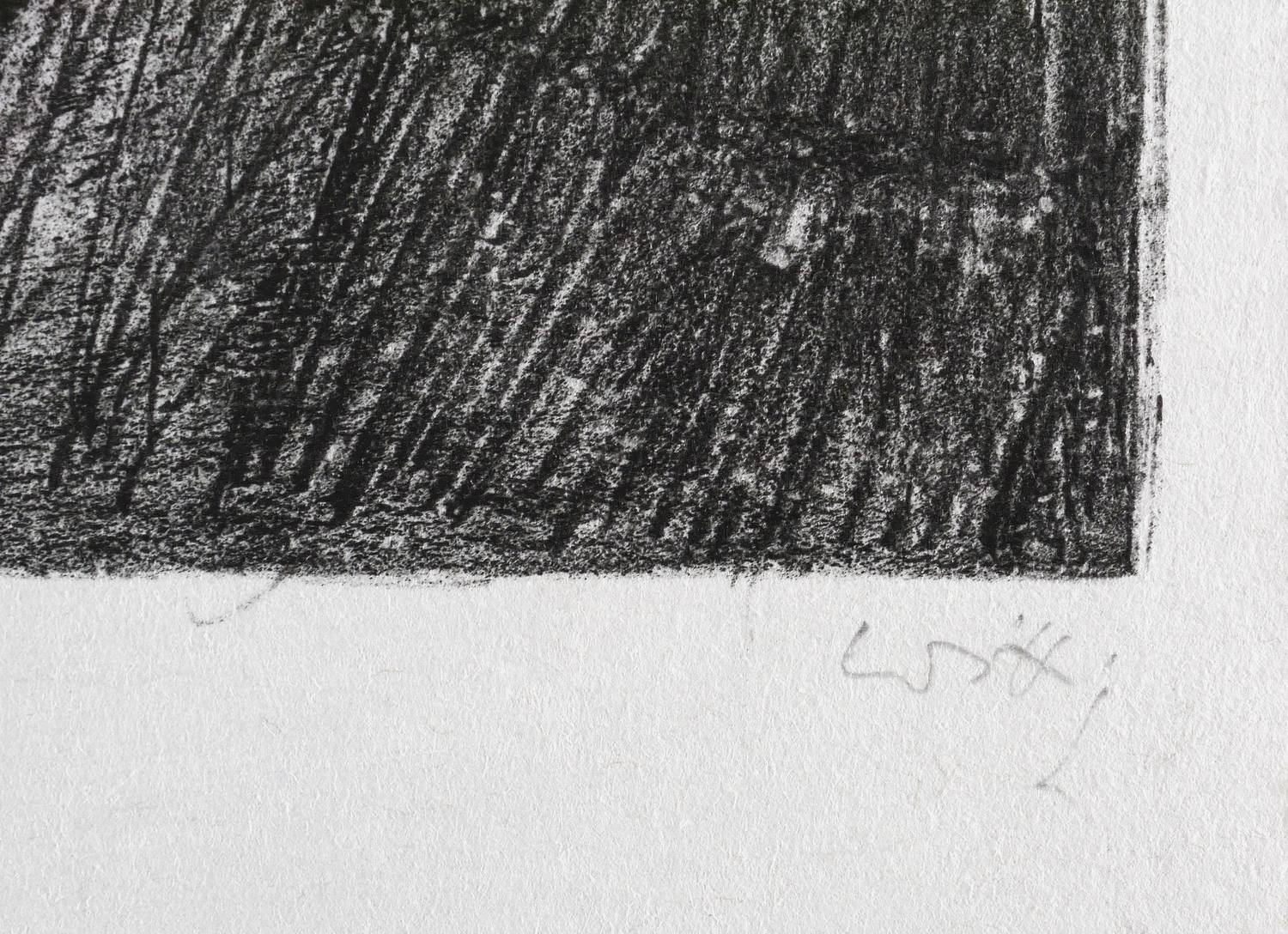 1982. Zinkografie / Kreidezinkografie, in Schwarz, auf hellgelbem grobfasrigem Japan. – Originale Künstlergrafik, von Werner Wittig. – Probedruck. – 68 x 49 cm (Blatt), 57,2 x 46,9 cm (Darstellung / Druckbild).