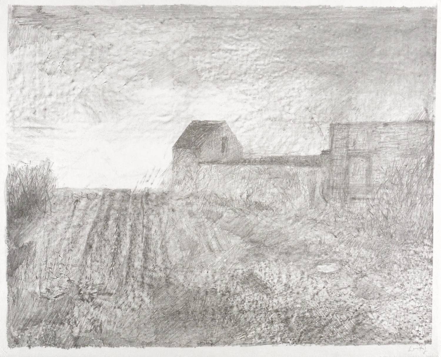 1980-1985. Zinkografie / Kreidezinkografie, in Schwarz, auf hellgelbem grobfasrigem Japan. – Originale Künstlergrafik, von Werner Wittig. – Druckerexemplar. – 53 x 64 cm (Blatt), 48,5 x 60,5 cm (Darstellung / Druckbild).