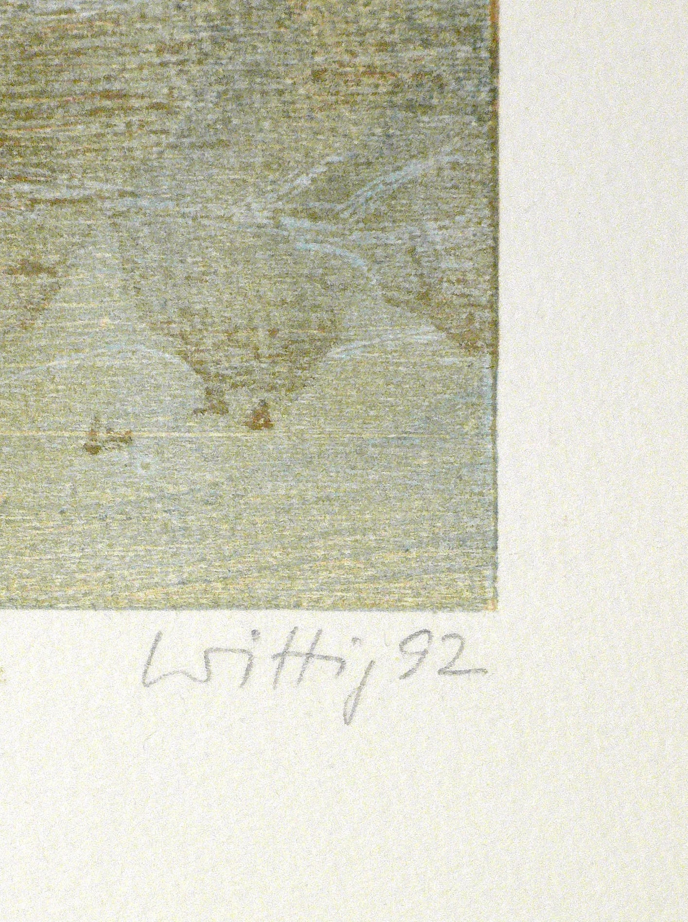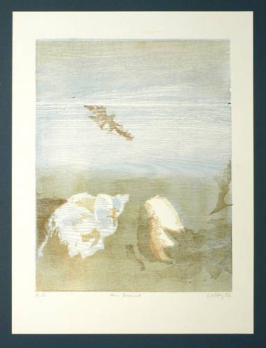 1992. Farbholzriss, in 2 Farben, auf weißem Velin. – Originale Künstlergrafik, von Werner Wittig. – Künstlerexemplar (e.a.). – 31,0 x 24,0 cm (Darstellung), 40 x 30 cm (Blatt).