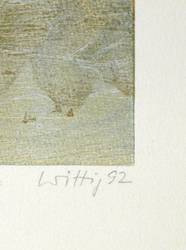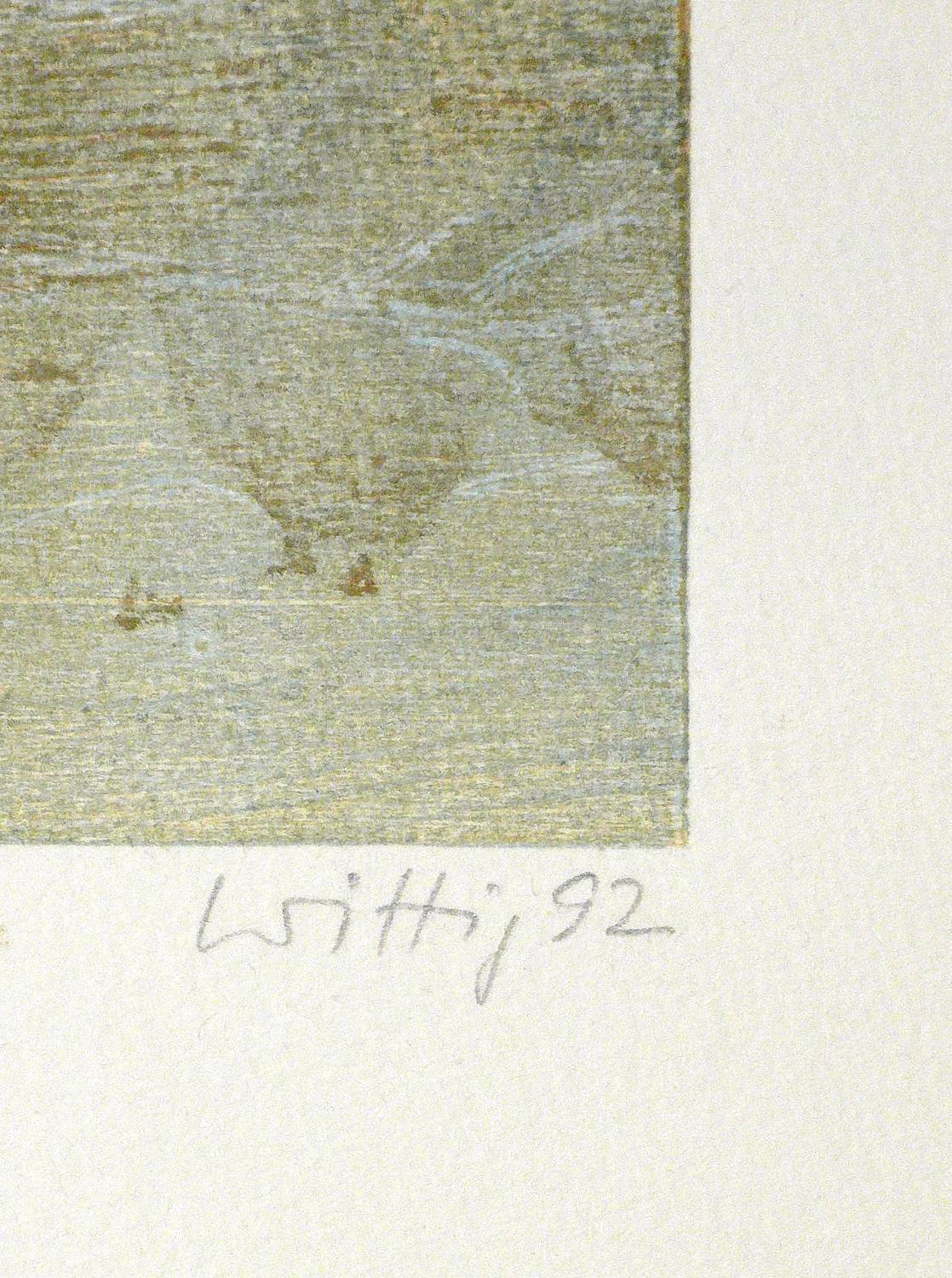 Werner Wittig (1930 Chemnitz - 2013 Radebeul). Deutscher Maler und Grafiker. 1952-57 Studium der Grafik an der HfbK Dresden bei Erich Fraaß, Hans Theo Richter und Max Schwimmer. Freundschaft mit Claus Weidensdorfer. 1957 Aufnahme in den Verband Bildender Künstler der DDR. Zahlreiche Einzelausstellungen z.B. in der Galerie Kühl in Dresden. Hans-Theo-Richter-Preis der Sächsischen Akademie der Künste in Dresden. Landschaft und Stillleben sind die zwei Hauptthemen des Künstlers, die meist mittels des Holzrisses oder Farbholzrisses umgesetzt werden. Typisch dabei sind die sichtbaren natürlichen Strukturen des Holzes, die, eingearbeitet in die Komposition, den Grafiken eine organische Lebendigkeit verleihen.