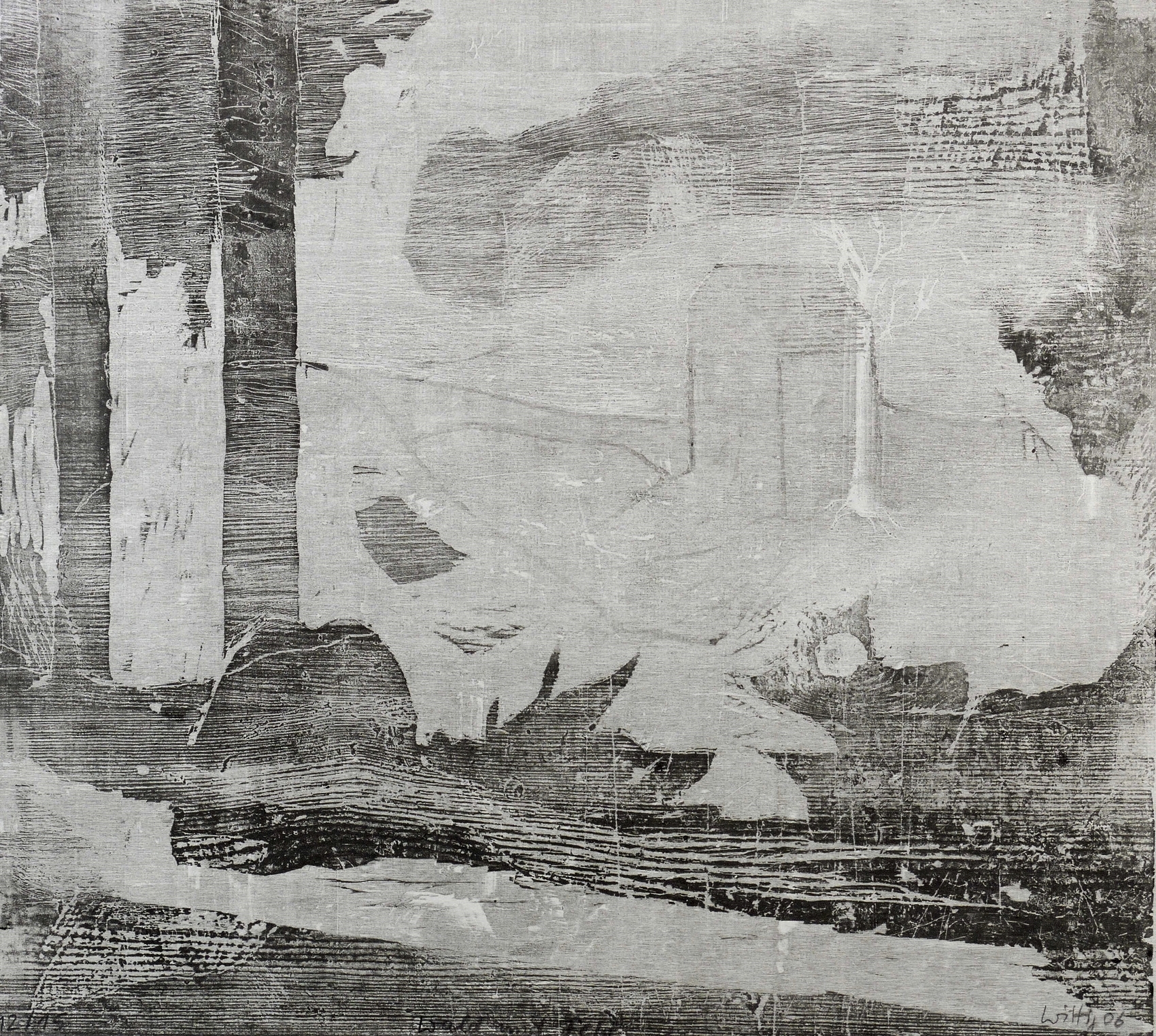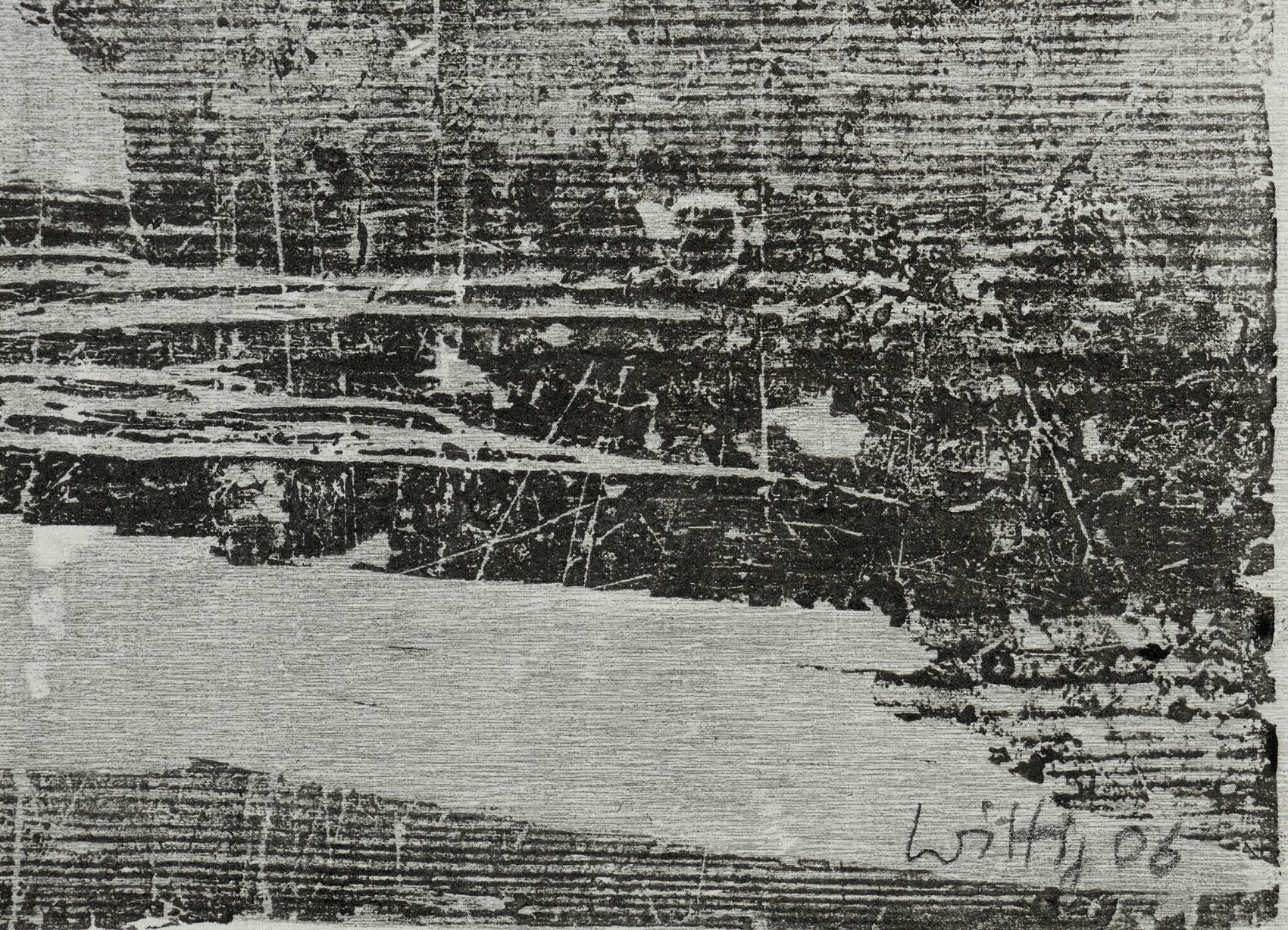 2006. Holzriss, in Schwarz, auf hellgrauem Achat-Büttenpapier. – Originale Künstlergrafik, von Werner Wittig. – Auflage Exemplar Nr. 12/15. – 45,0 x 50,0 cm (Darstellung / Blatt).