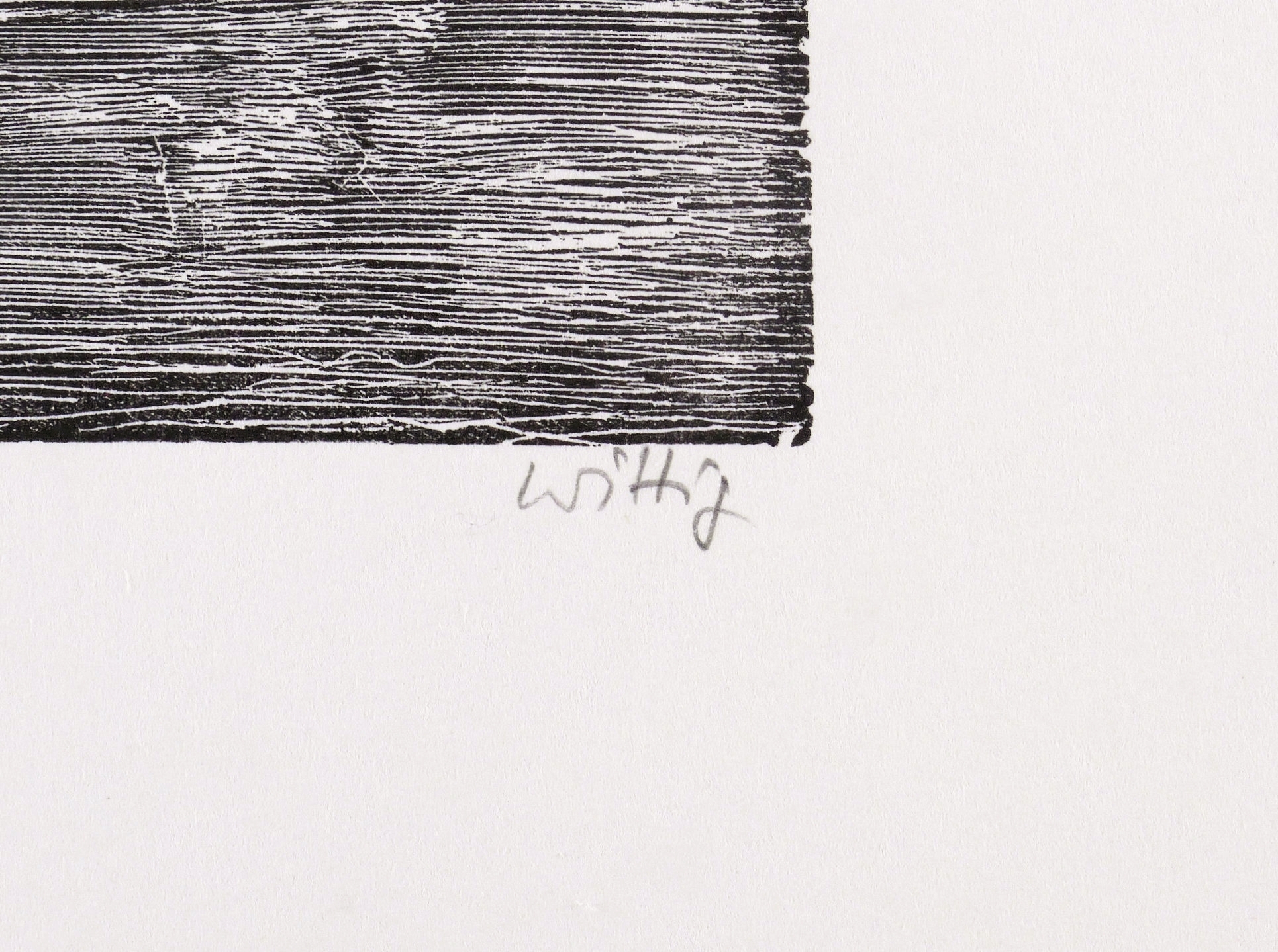 2004. Holzriss, in Schwarz, auf glattem weißem Velinkarton. – Originale Künstlergrafik, von Werner Wittig. – 21 x 23 cm (Blatt), 10,0 x 10,0 cm (Darstellung / Druckstock).