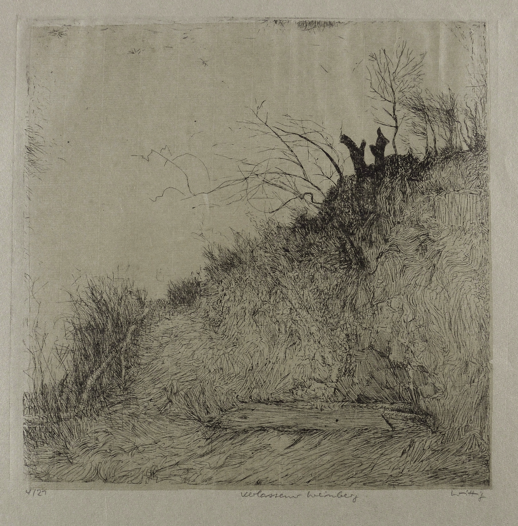 Rechts unten in Bleistift signiert: ″Wittig″. Links Auflagenbezeichnung: ″4/21″. Mittig Titel: ″Verlassener Weinberg″. – Sehr guter Zustand.