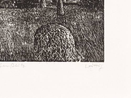 1983. Holzriss, in Schwarz, auf leichtem hellchamois Maschinenbütten. – Originale Künstlergrafik, von Werner Wittig. – Auflage Exemplar Nr. 50/70. – 20,3 x 25,0 cm (Darstellung / Druckbild), 28 x 32 cm (Blatt).