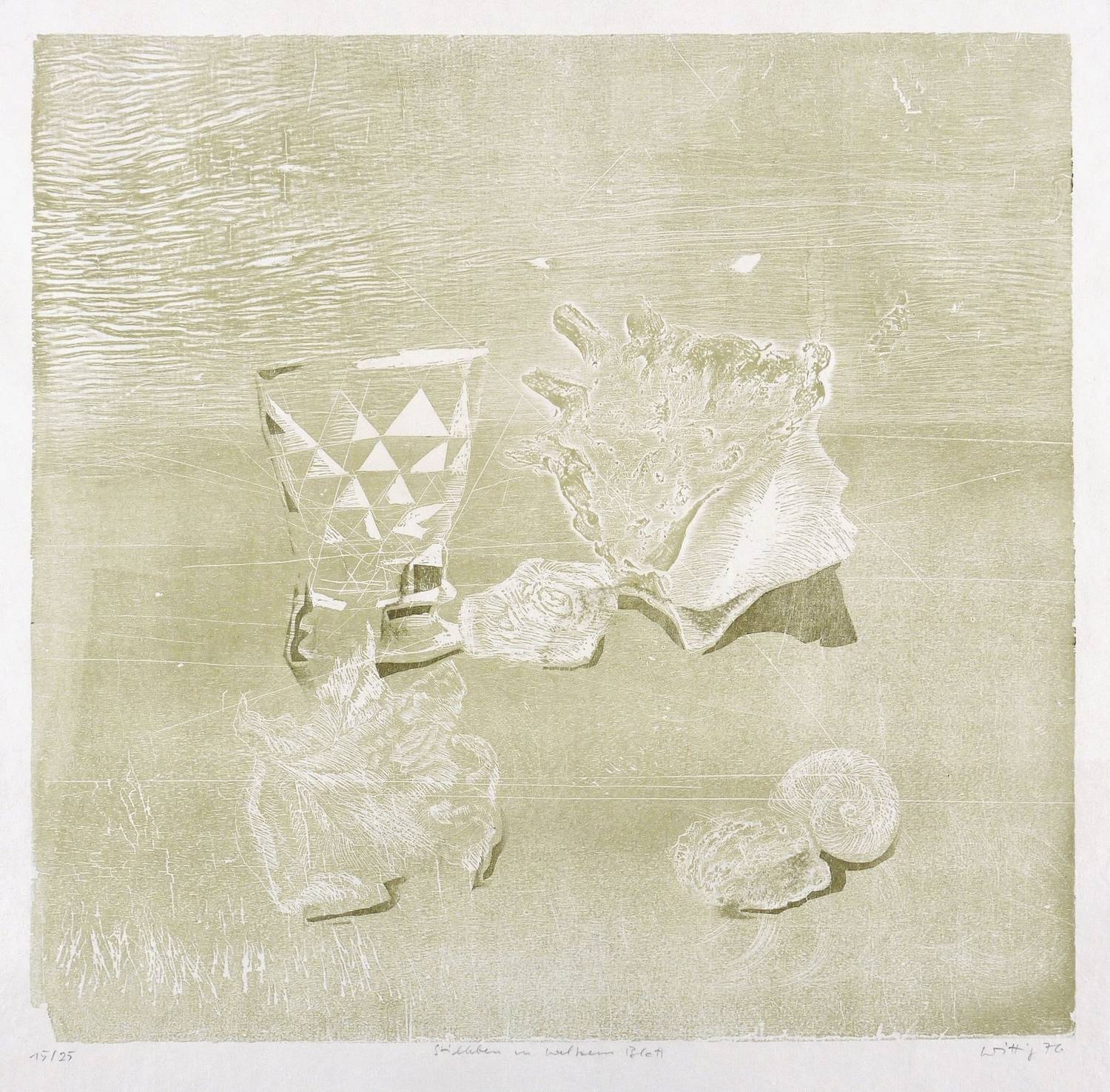 Reinhardt (2000) 76. Reinhardt (1993) 174. – Rechts unten in Bleistift signiert und datiert: ″Wittig 76″. Links Auflagenbezeichnung: ″15/25″. Mittig Titel: ″Stilleben m. welkem Blatt″. – Tadellos. Sehr guter Zustand.