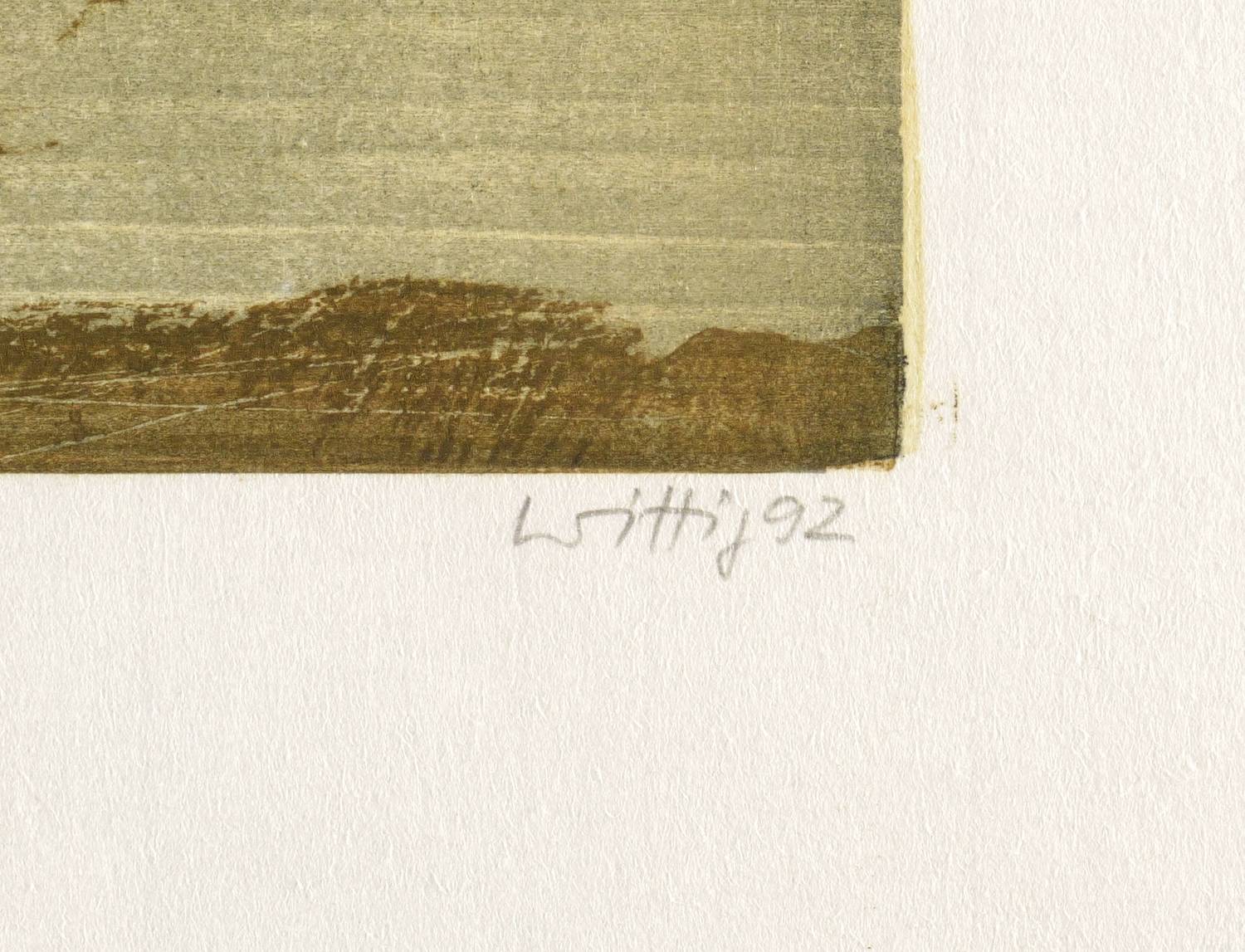 1992. Farbholzriss, in 3 Farben, von 3 Stöcken, auf rauem kräftigem Japan. – Originale Künstlergrafik, von Werner Wittig. – Auflage Exemplar Nr. 18/42. – 33,2 x 44,0 cm (Darstellung / Druckbild), 52 x 57 cm (Blatt).