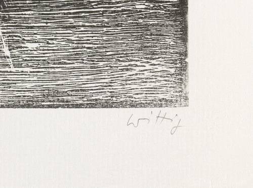 1973. Holzriss / Holzriß, in Schwarz, auf weißlichem Achat-Maschinenbütten. – Originale Künstlergrafik, von Werner Wittig. – Künstlerexemplar (e.a.). – 20,3 x 24,9 cm (Darstellung / Druckstock), 25 x 31 cm (Blatt).