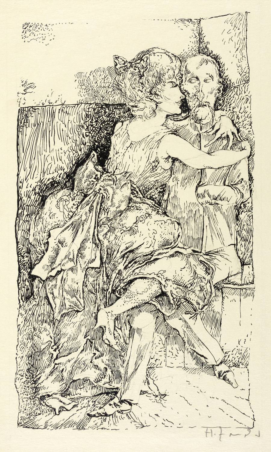 Heinz Zander (1939 Wolfen - 2024 Leipzig). Deutscher Maler, Grafiker und Schriftsteller. 1959-64 Studium an der Hochschule für Grafik und Buchkunst in Leipzig u.a. bei Bernhard Heisig. 1967-70 Meisterschüler von Fritz Cremer an der Akademie der Künste in Berlin (Ost). Seit 1970 freischaffend. Namhafter Vertreter der realistisch-manieristischen Strömung der Leipziger Schule. Seine an altmeisterlicher Manier orientierte Malweise lässt Vorbilder wie Hieronymus Bosch, Albrecht Altdorfer, Matthias Grünewald sowie die italienischen Manieristen erkennen.