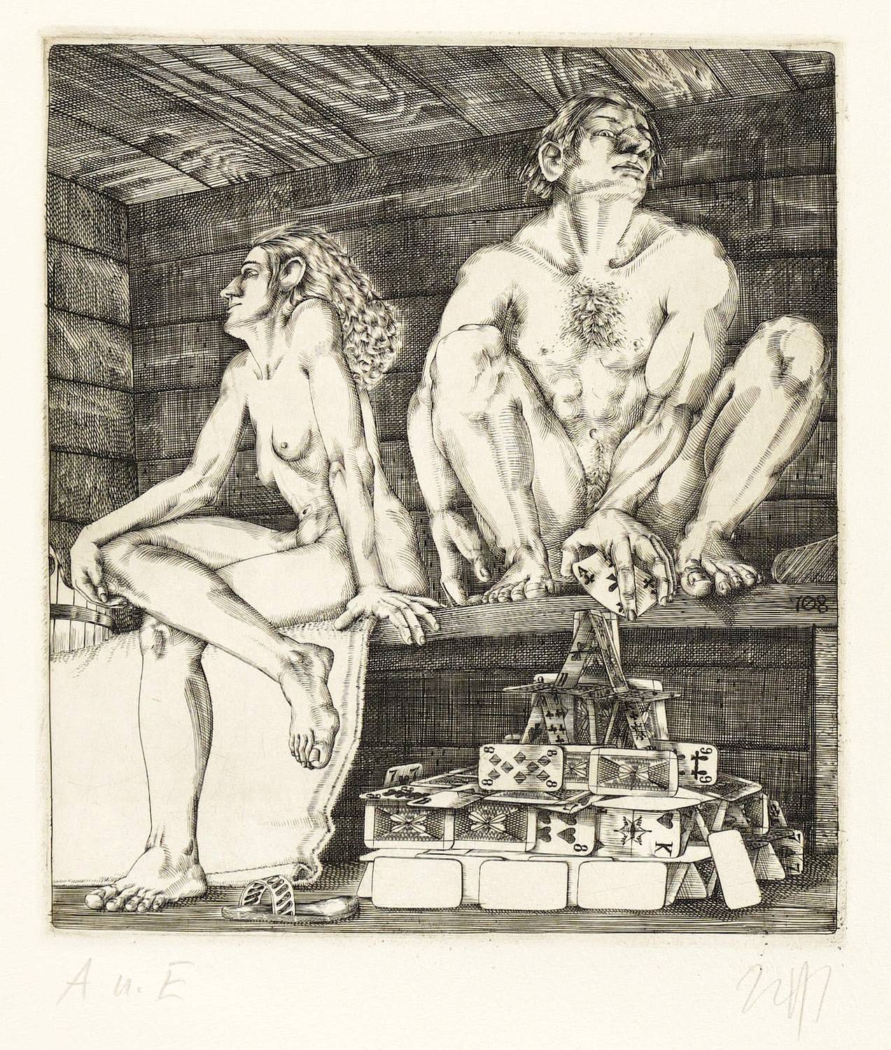 Baldwin Zettl (*1943 Falkenau/Eger, lebt und arbeitet in Leipzig). Deutscher Grafiker. 1964–69 Studium an der Hochschule für Grafik und Buchkunst Leipzig (HGB) bei Werner Tübke, Gerhard Kurt Müller und Rolf Kuhrt. Meisterhafte Silberstiftzeichnungen und Kupferstiche. Gehört mit Karl-Georg Hirsch und Rolf Münzner zu den herausragenden Grafikern der Leipziger Schule.