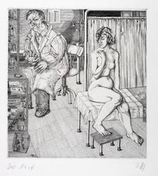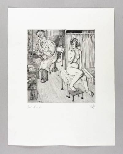 Lübbert 73/1 d (von d). – Rechts unten in Bleistift signiert: ″Zettl″. Links betitelt: ″Der Arzt″. In der Platte links unten Jahr und Monogramm: ″7 BZ 3″ – Provenienz: Sammlung Dr. Ingrid und Prof. Dr. Albrecht Scholz, Dresden. – Sehr guter Zustand.