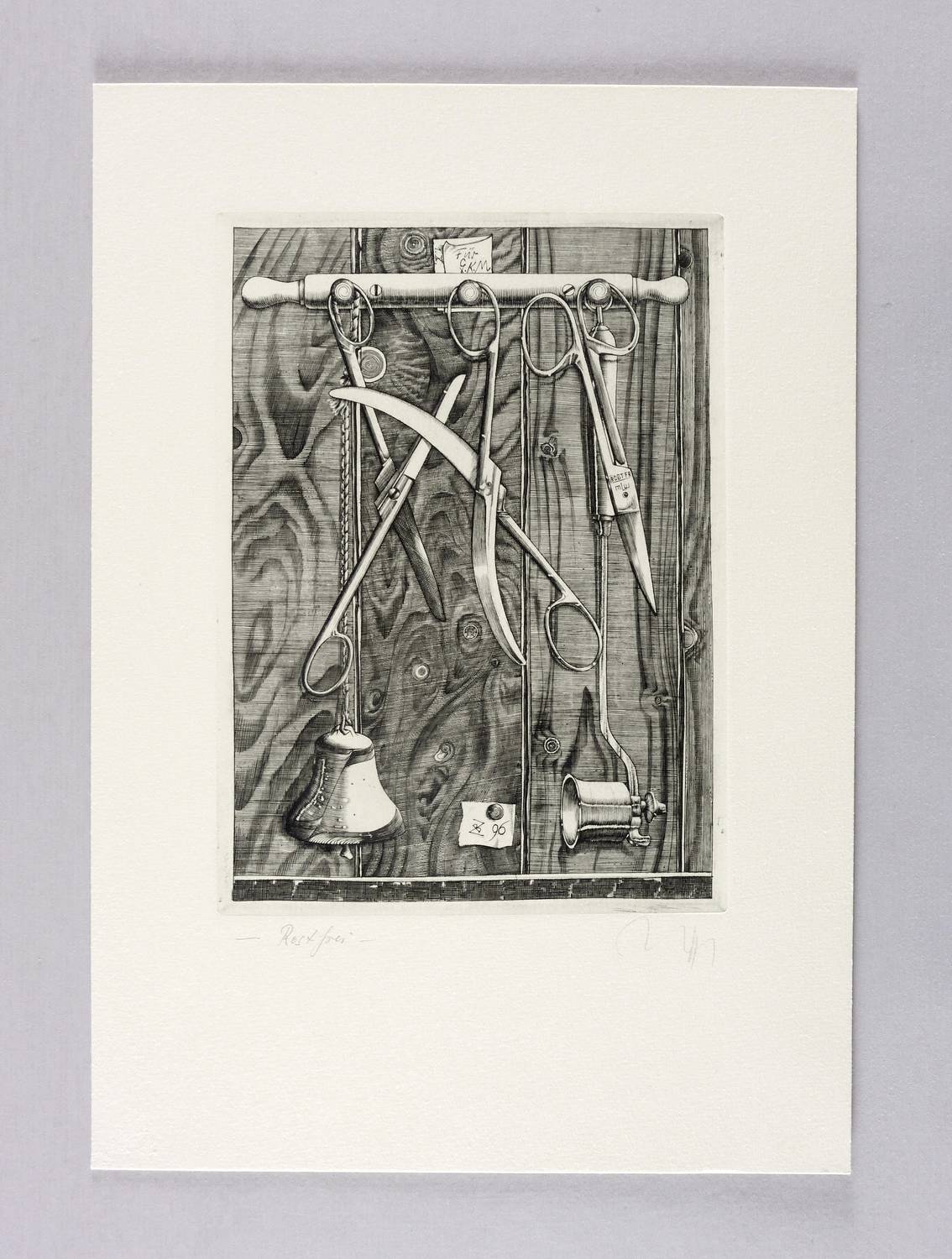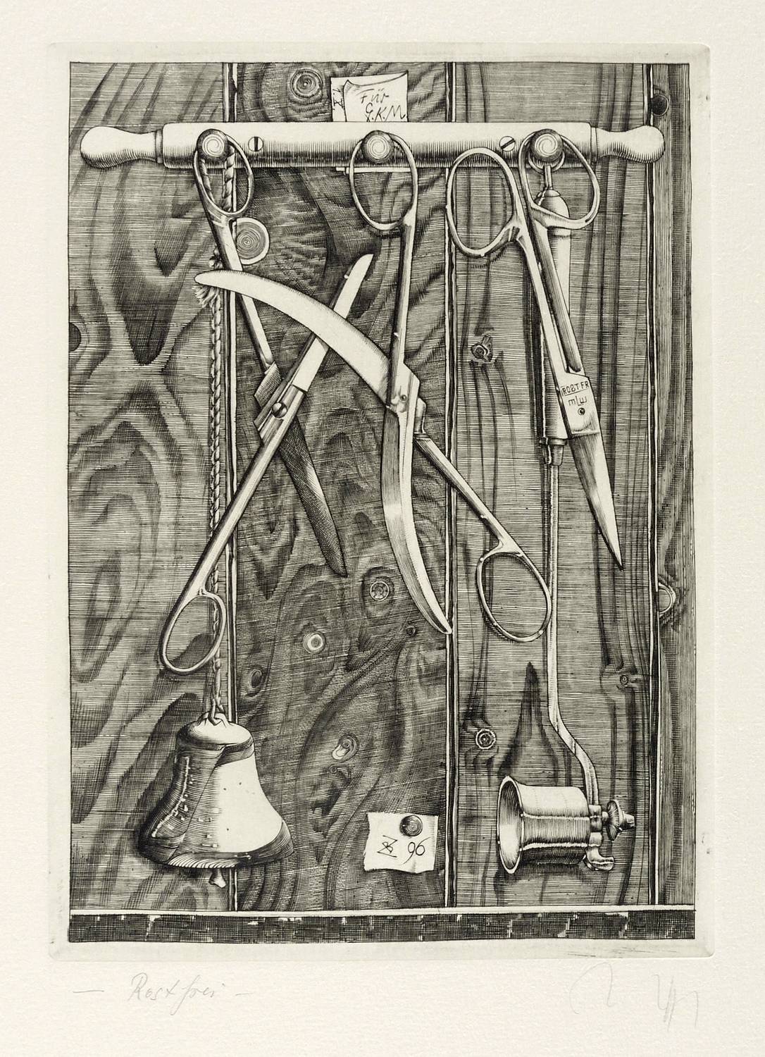 Lübbert 96/6. – Rechts unten in Bleistift signiert: ″Zettl″. Links Titel; ″Rostfrei″. – Im Werkverzeichnis von Lübbert unter dem Titel: ″Rostfrei. Für G.K.M.″ (Gerhard Kurt Müller). – Sehr guter Zustand.