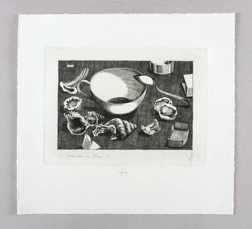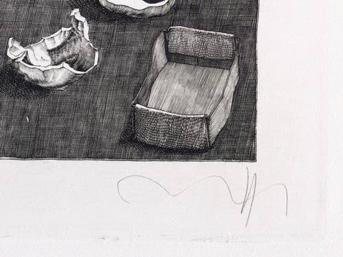 2012. Kupferstich / Linienstich, in Schwarz, auf feinem hellchamois Velin. – Originale Künstlergrafik, von Baldwin Zettl. – Auflage Exemplar Nr. 14/40. – 13,5 x 20,0 cm (Darstellung / Einfassungslinie), 17,5 x 24,5 cm (Platte), 30 x 32 cm (Blatt).