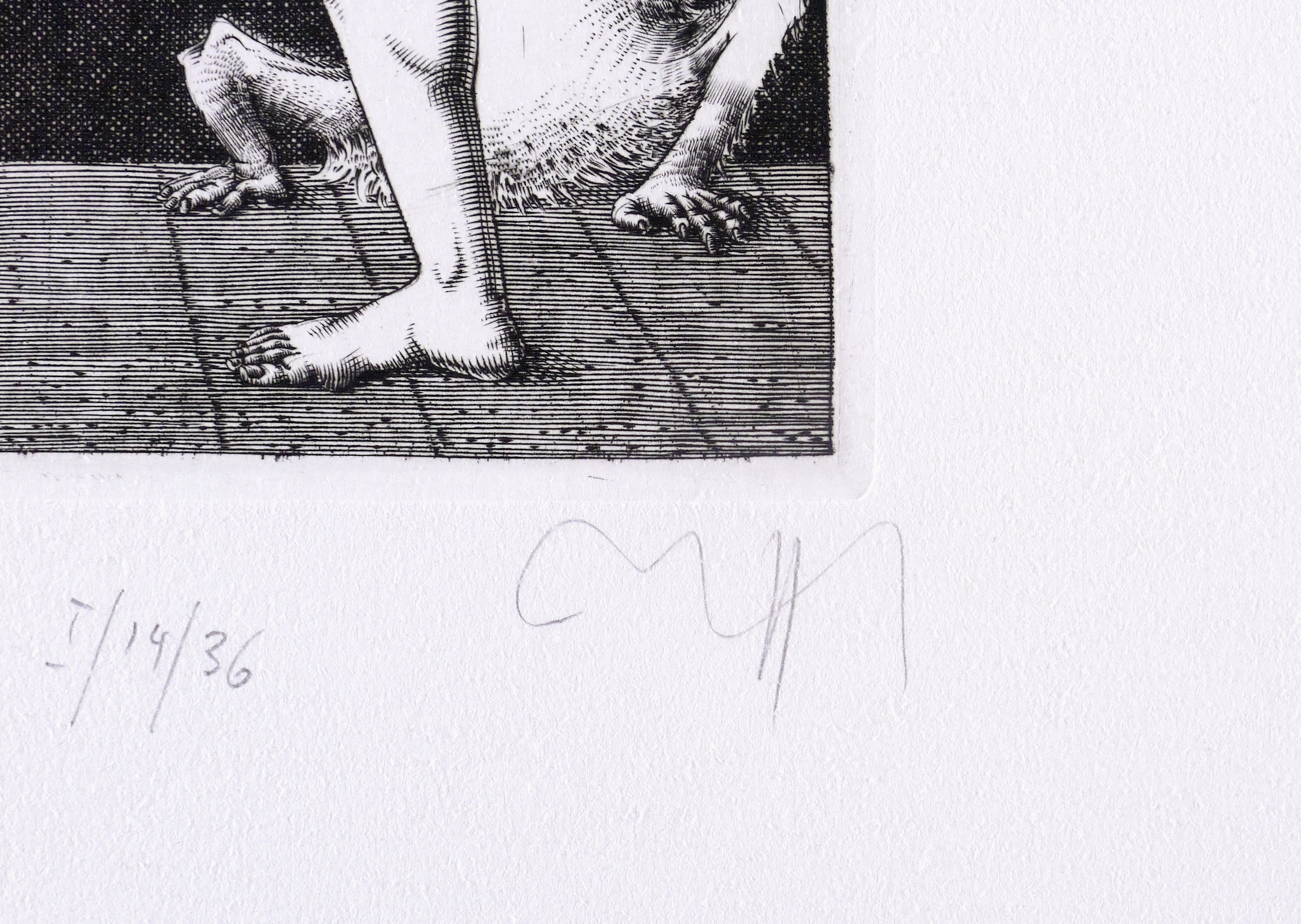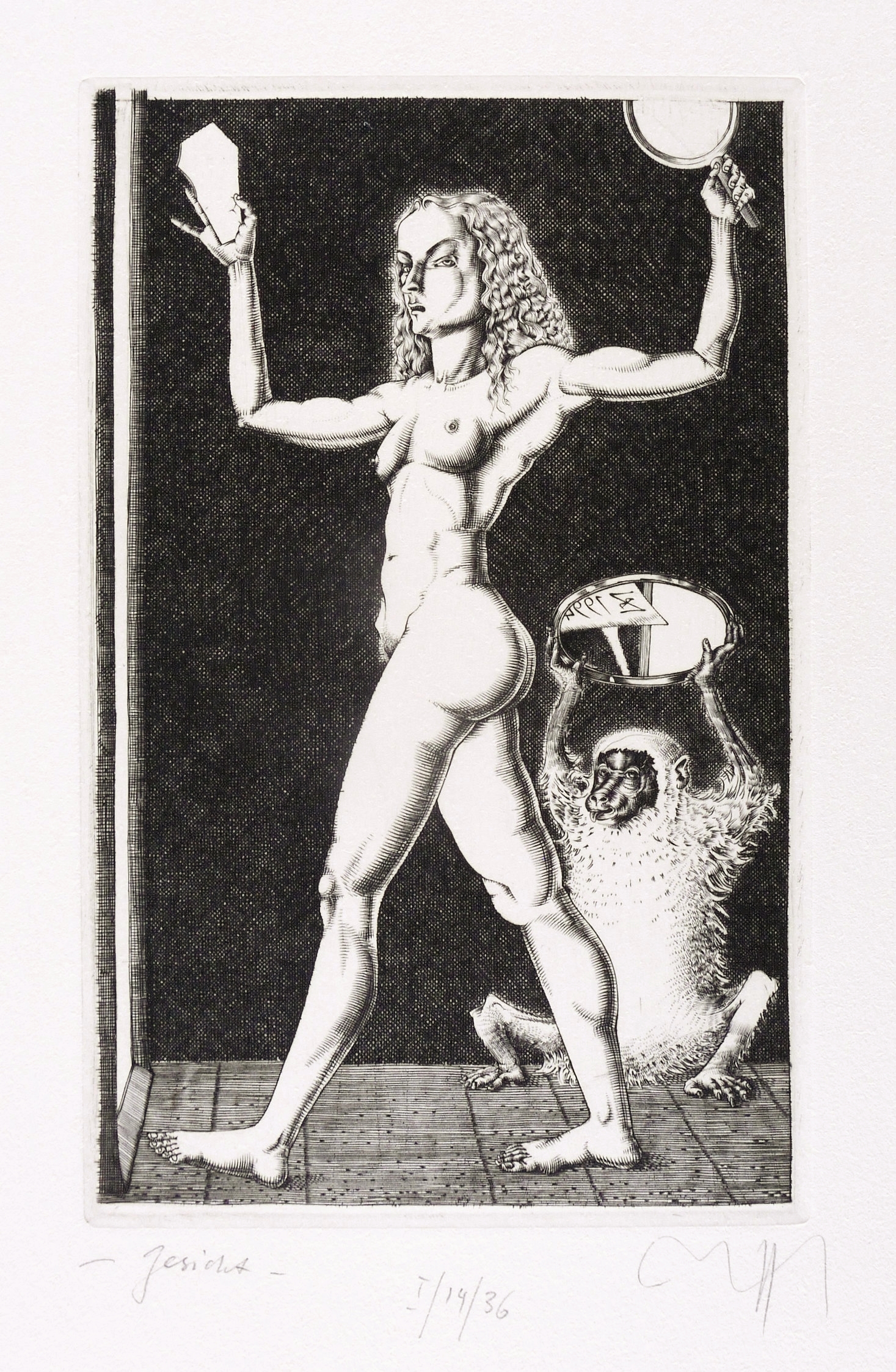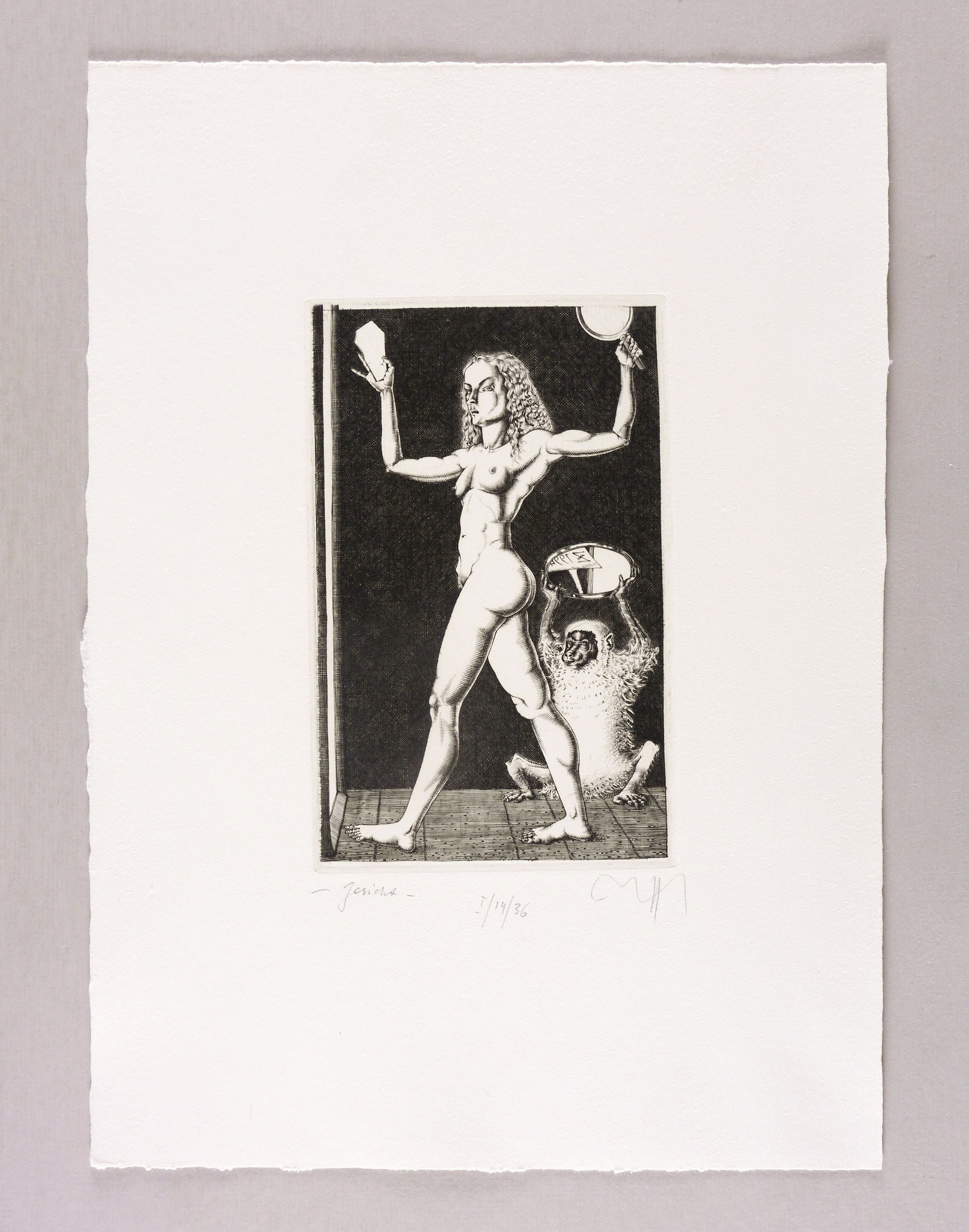 1994. Kupferstich / Linienstich, in Schwarz, auf festem weißem Velinkarton. – Originale Künstlergrafik, von Baldwin Zettl. – Auflage Exemplar Nr. 14/36. – 19,8 x 12,4 cm (Darstellung / Einfassungslinie), 20,5 x 13,0 cm (Platte), 40 x 29 cm (Blatt).