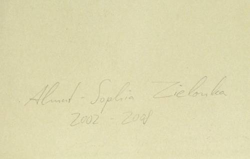 Almut-Sophia Zielonka (*1966 Ohrdruf / Thüringen, lebt und arbeitet in Bautzen). Deutsche Malerin. 1981-84 Besuch der Förderklasse und Abendschule der Hochschule für Bildende Künste (HfBK) Dresden, Aussenstelle Bautzen bei Hans Kutschke. 1984-85 Bühnenbildassistenz am Bautzner Theater. 1985-87 Betreuerin am Rehabilitationszentrum in Bautzen. 1987-93 Studium an der Kunsthochschule Berlin-Weißensee und der HfBK Dresden bei Hubertus Giebe, Gerhard Kettner und Ralf Kerbach. Im Jahre 1993 diplomiert sie bei Ralf Kerbach. Ab 1989 diverse Studienreisen nach Italien, Frankreich und England. 1993 mehrwöchiger Arbeitsaufenthalt und Ausstellung in Israel auf Einladung der Stadt Rehovat. 1994-96 Meisterschülerin bei Ralf Kerbach. 1994-95 Arbeitsaufenthalt in München. Darauf an verschiedenen Orten in Deutschland tätig. 2000 Gestaltung und Realisierung eines Trinkbrunnens für Bautzen. 2000-02 Atelier in Leipzig, darauf Umzug nach Bautzen.