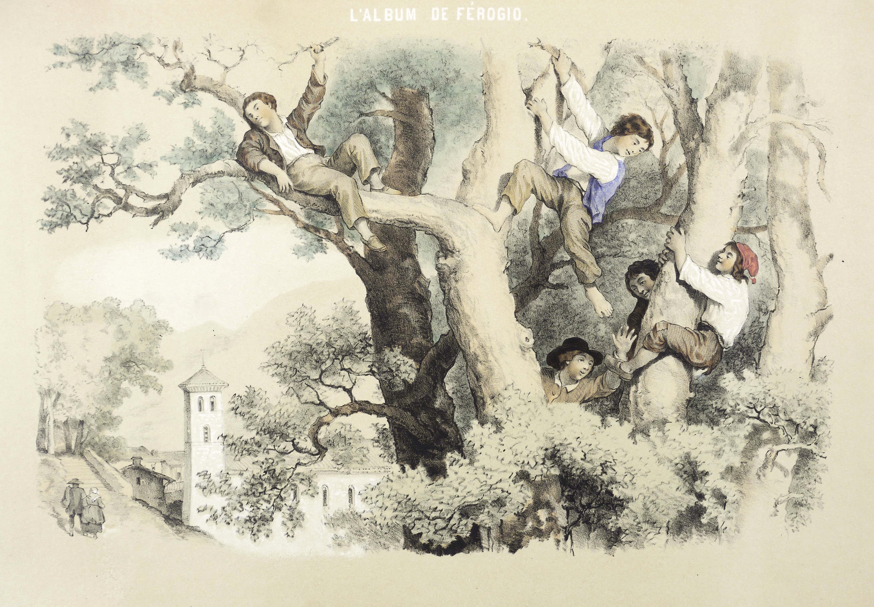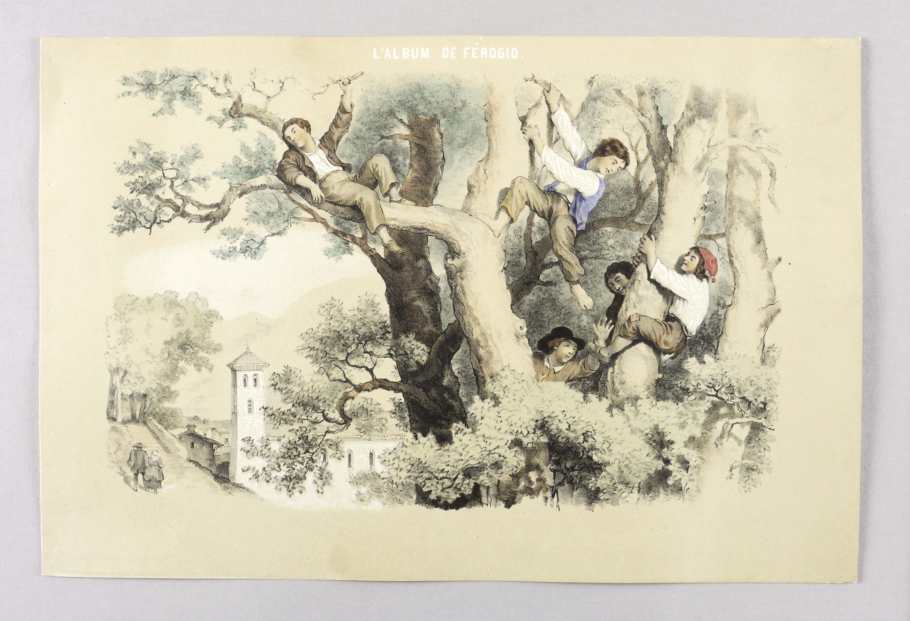 Ferogio, Fortuné. – L'album de Ferogio. – „Kletternde Knaben in einer Baumkrone”.