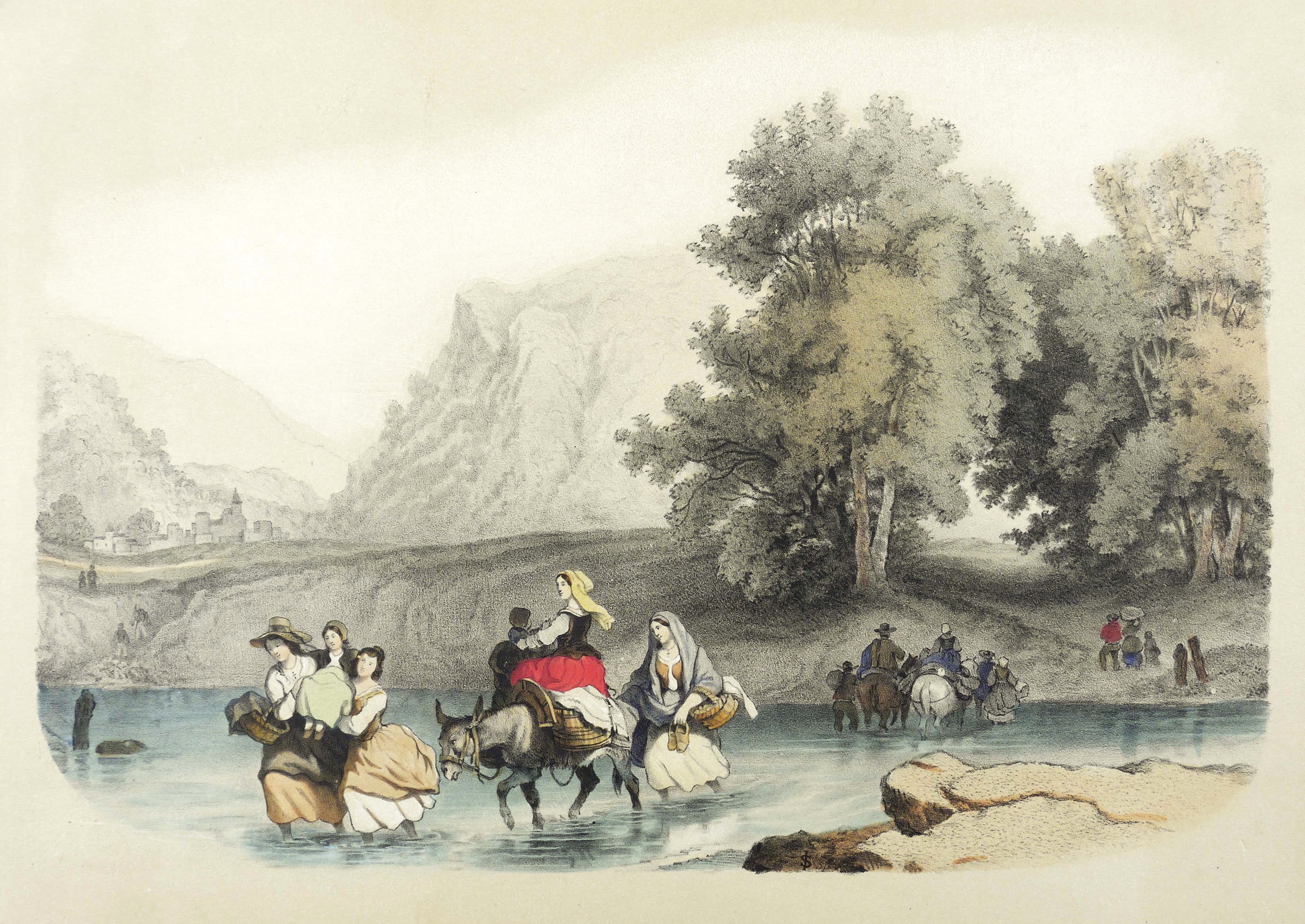 Aus: François-Fortuné-Antoine Férogio, L'album de Ferogio (Paris: Lemercier 1844). – Oben Serientitel: ″L'ALBUM DE FÉROGIO″. Am unteren Rand monogrammiert: ″IS″. Sonst nicht näher bezeichnet. – Ländliches Idyll in der Art der französischen Romantik. – Originalrandiges Exemplar, Papier altersbedingt leicht gegilbt. Insgesamt schönes Erscheinungsbild und guter Zustand.