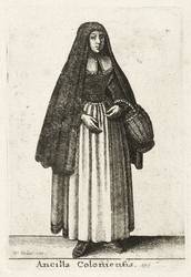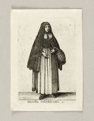 Parthey 1844. (37.). – Aus: Wenzel Hollar, Theatru[m] mvliervm, sive, Varietas atq[ue] differentia habituum foeminei sexus diuersorum Europae nationum hodierno tempore (London: 1643). – Links unten signiert und datiert: ″W. Hollar inv 1643″. Unterhalb der Darstellung betitelt. – Blatt verso mit geringen Montageresten. Sonst guter Zustand.