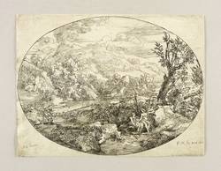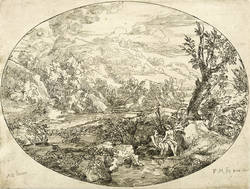 Meyer, Felix. – Landschaft mit drei Personen. – nach Genoels d. J..