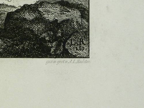 Hoff-Budde 200 [1875, 9]. Hoff 164. – Aus: Adrian Ludwig Richter, Landschaften von Ludwig Richter. Zwölf Original-Radirungen (Leipzig: Alphons Dürr 1875). – In der Platte links unten signiert ″gez. u. gest. v. A.L. Richter.″ In der Darstellung rechts unten wiedergegebenes Monogramm ″LR 1830″. Unterhalb Verlegeradresse Friedrich Felsing München und gestochener Titel. – Später originaler Abzug der schon 1830 für die ″Bilderchronik″ des Sächsischen Kunstvereins hergestellten Platte. – Originalranidges Blatt, oberflächlich kaum merklich berieben. Sehr gut erhaltenes Exemplar.