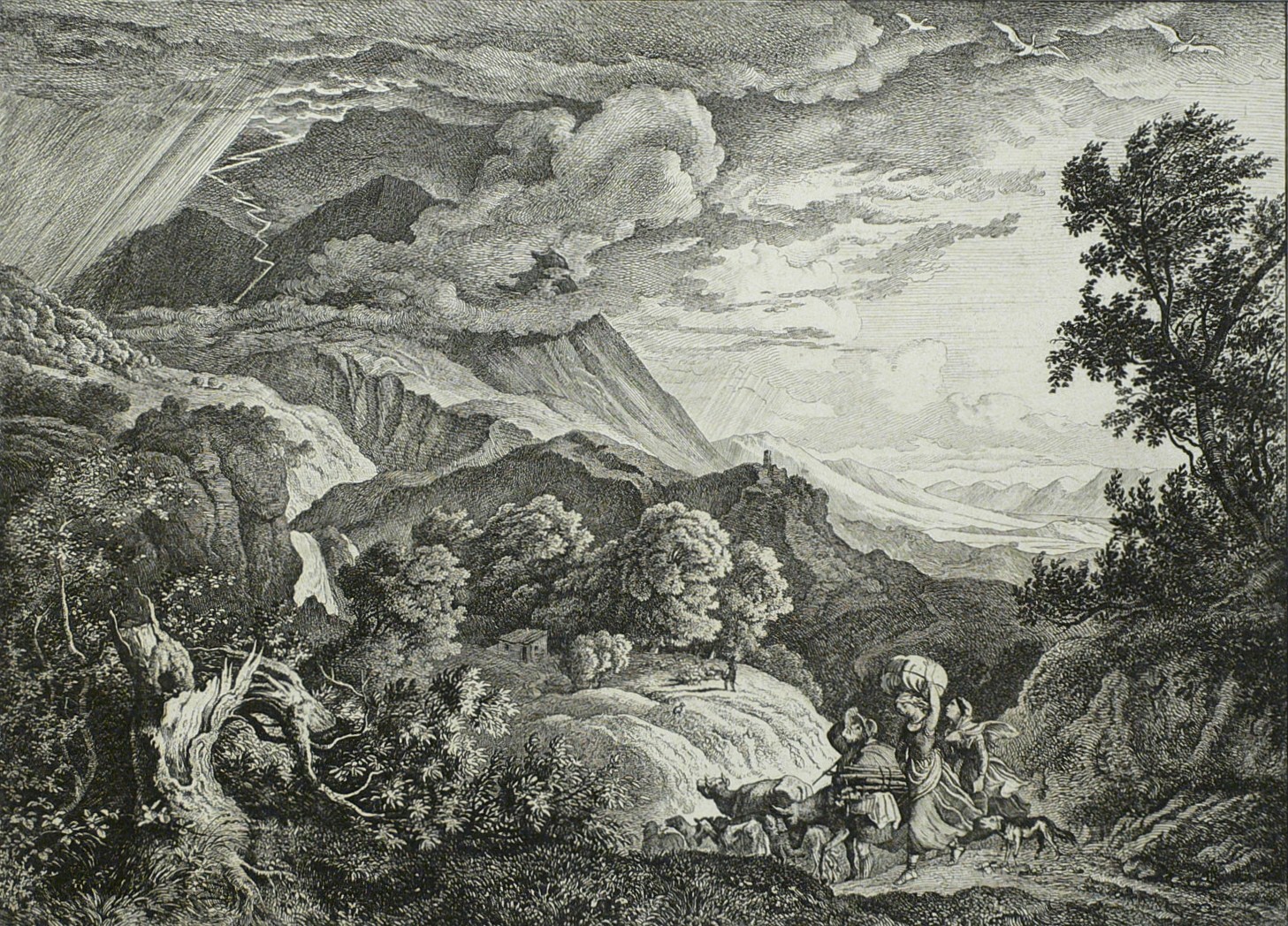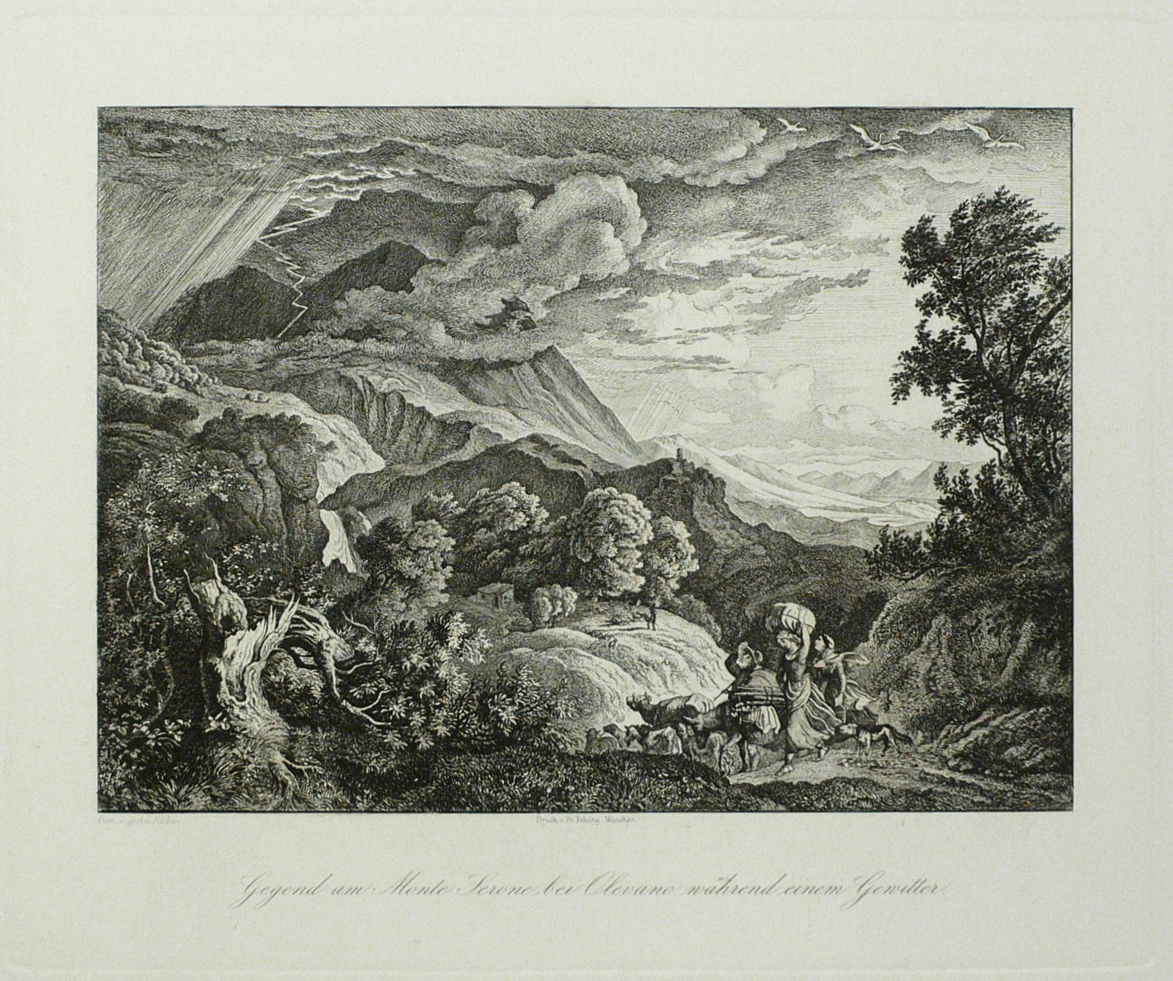 Richter, Adrian Ludwig. – „Gegend am Monte Serone bei Olevano während einem Gewitter”.