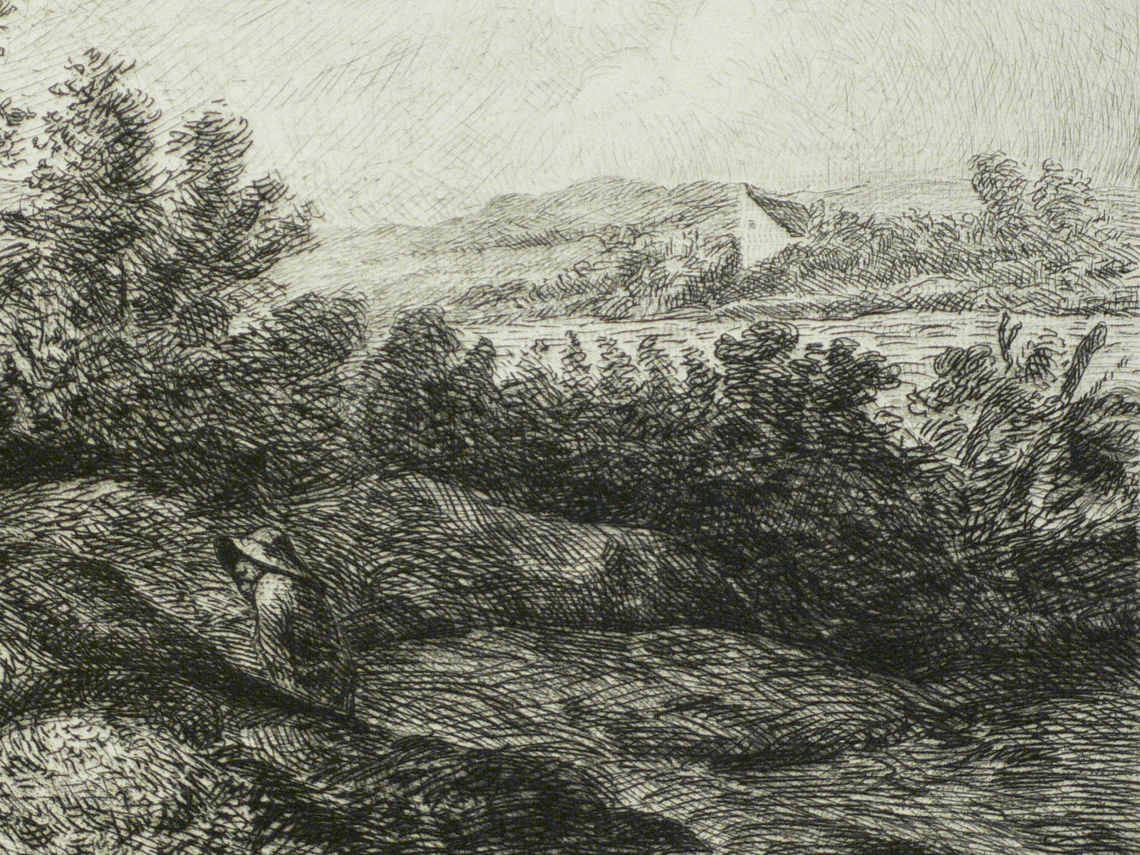 1884. Radierung / Strichätzung & Roulette, auf aufgewalztem gelblichen China. – Originale Künstlergrafik, von Friedrich Leonhard Meyer. – 12,0 x 20,0 cm (Darstellung), 20,3 x 25,2 cm (Platte), 25,5 x 32,5 cm (Blatt).