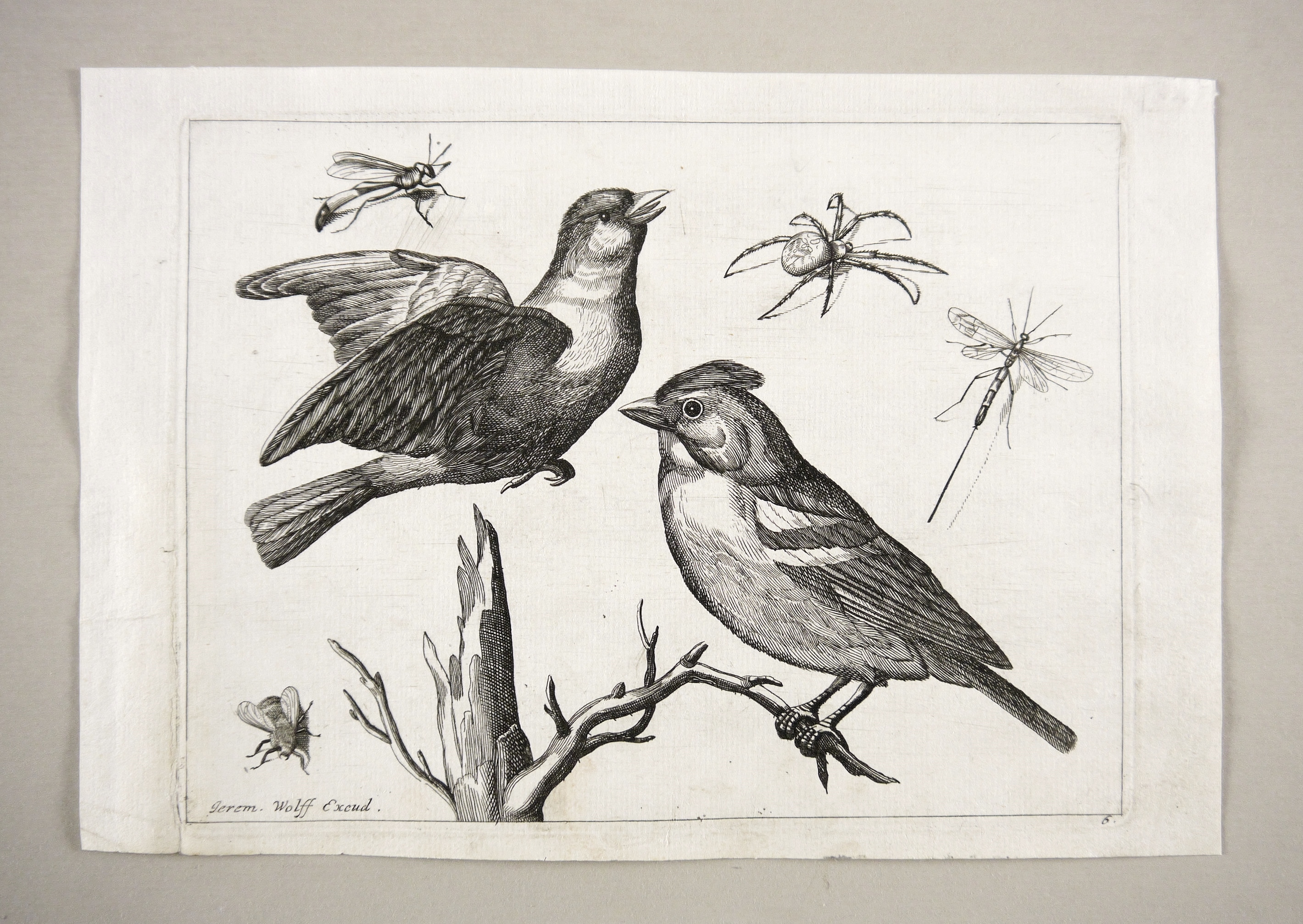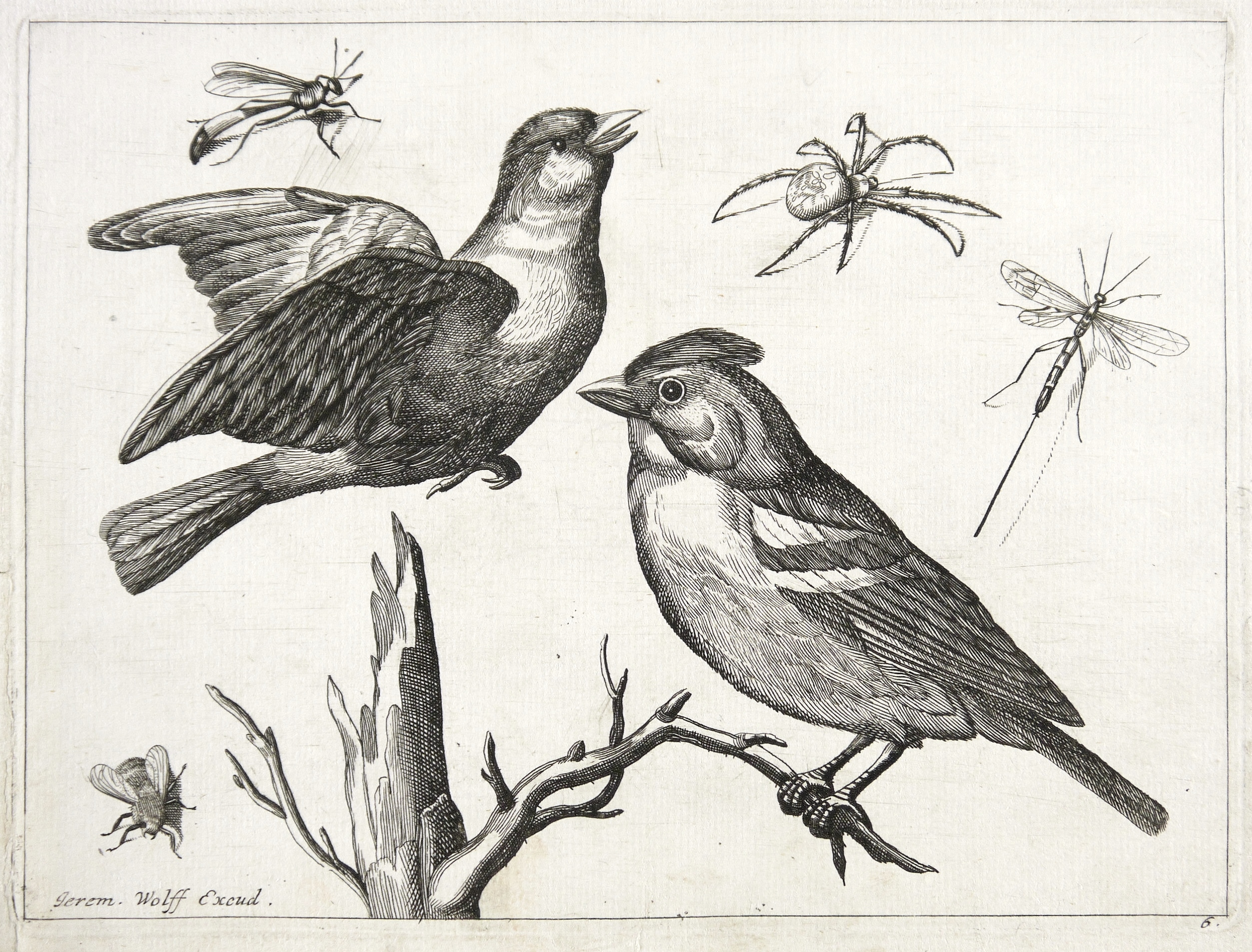 Hafner, Johann Christoph. – Zwei Finken mit Insekten und Spinne.