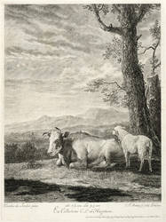 Karel Dujardin (1622 Amsterdam - 1678 Venedig). Auch Karel du Jardin. Niederländischer Maler und Radierer. Laut Houbraken war er Schüler von Nicolas Berchem. Um 1640 ist er in Rom tätig. 1650 Rückkehr nach Amsterdam. 1652 Aufenthalt in Paris. Um 1657 Mitglied der Confrérie Pictura in Den Haag. 1675 Rückkehr nach Italien. Neben arkadischen Landschaften schuf er Genreszenen, Historienbilder, Bildnisse und nahezu 50 Radierungen.