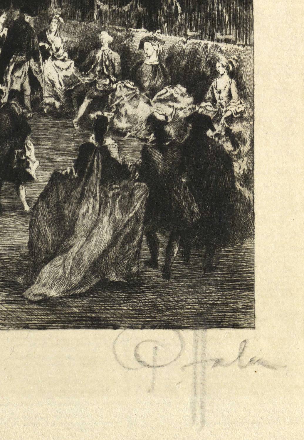 1916. Radierung / Strichätzung, mit Plattenton, in Schwarz, auf gelblichem Büttenpapier. – Originale Künstlergrafik, von Peter Halm. – 20,1 x 26,9 cm (Darstellung), 22,8 x 29,7 cm (Platte), 31 x 39 cm (Blatt).