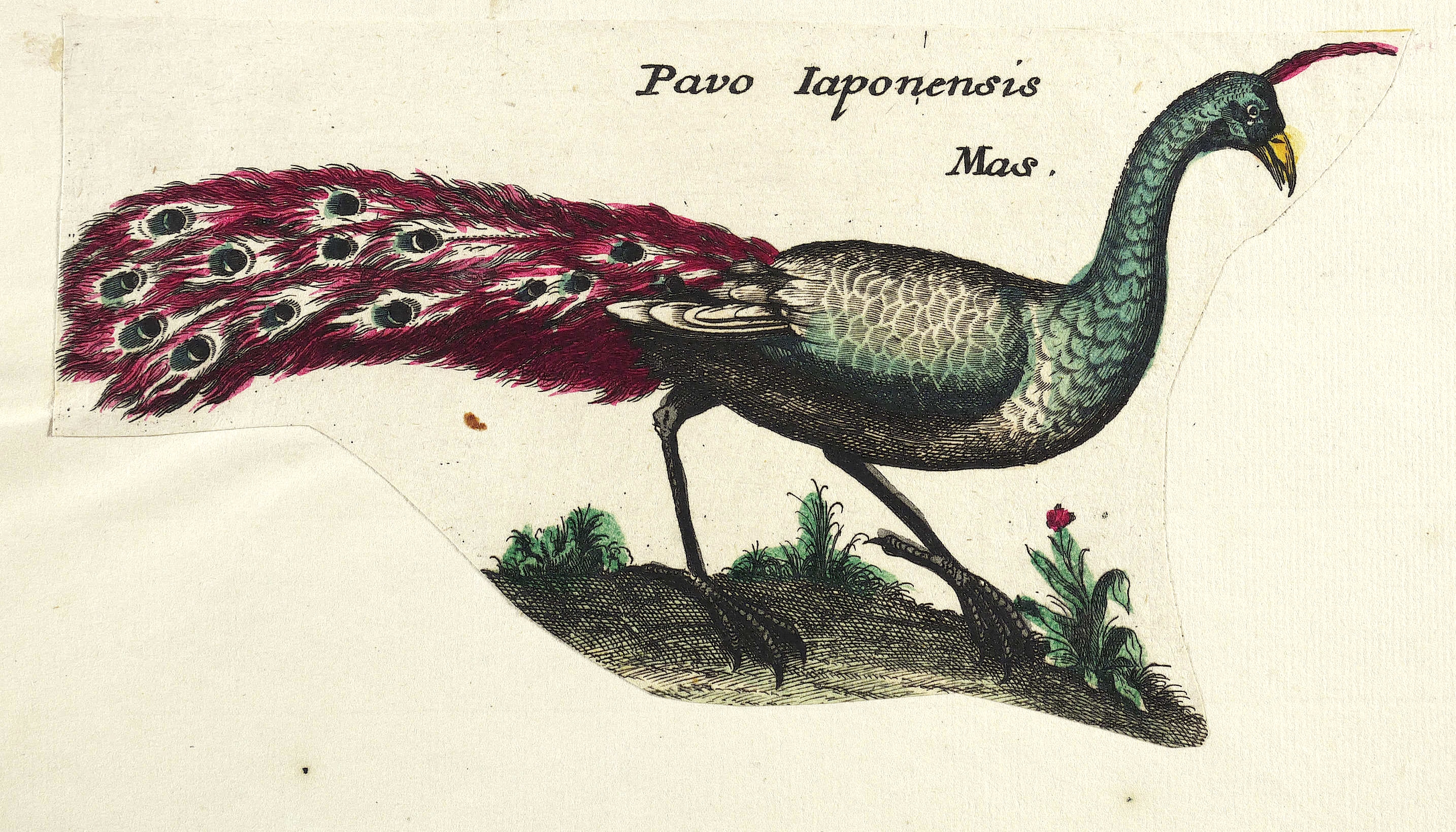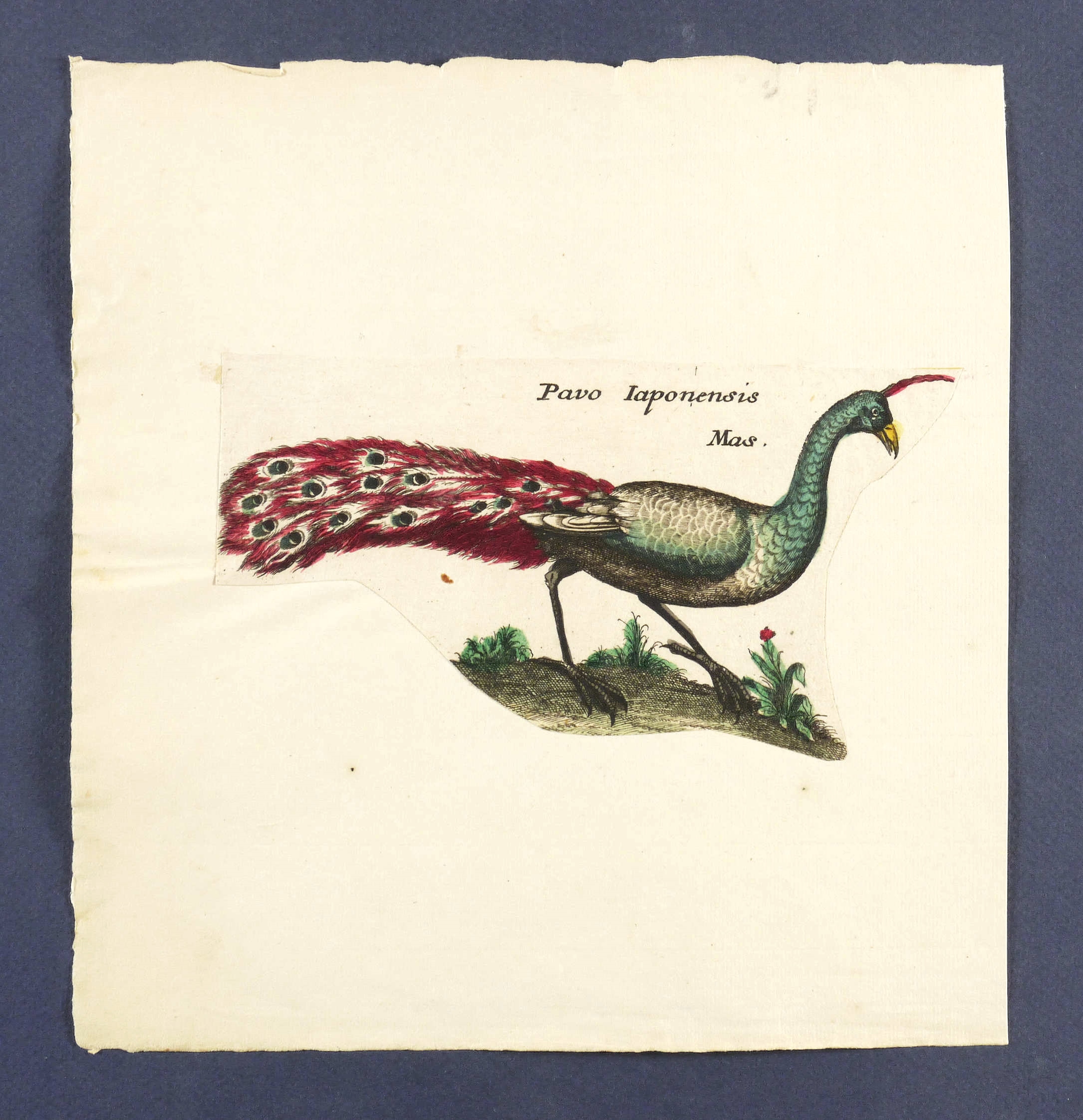 Vögel. – Pfauen. - Japanischer Pfau. – „Pavo Iaponensis Mas.”.