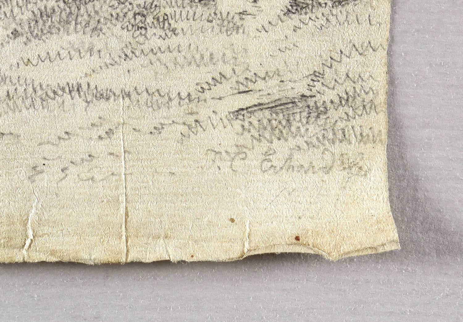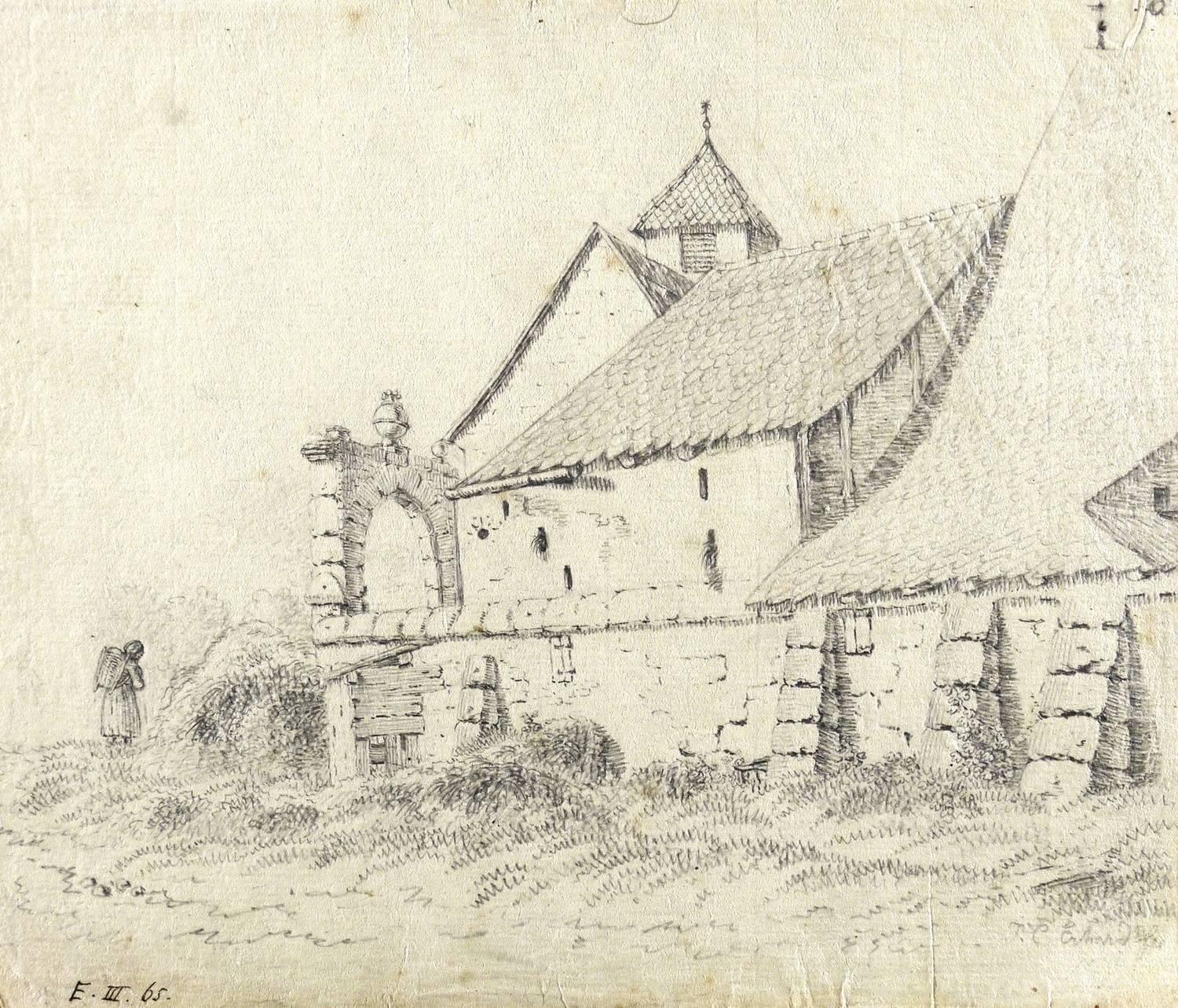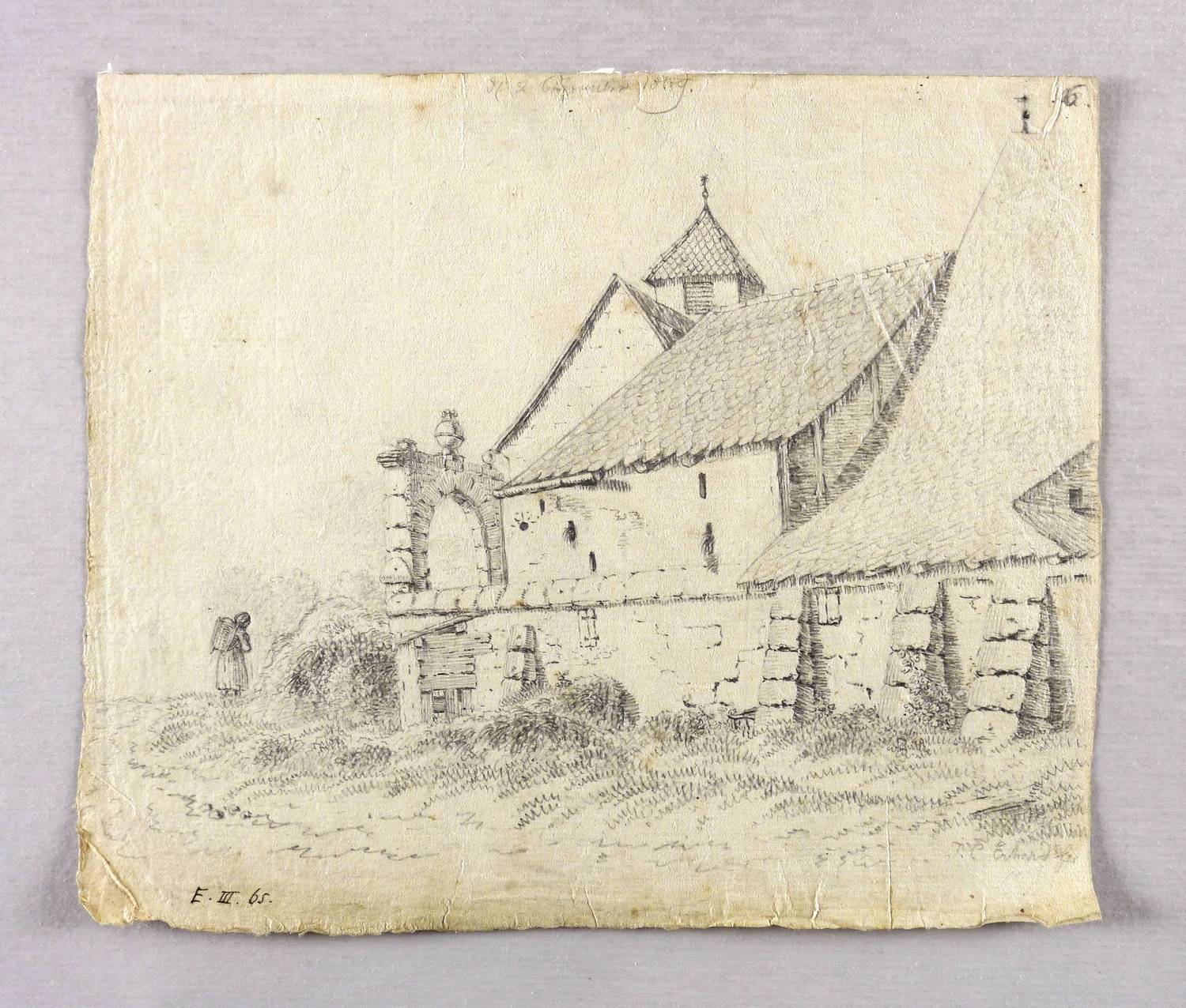 Rechts unten in Bleistift signiert: ″J. C. Erhard fec″. Oben mittig datiert: ″D. 2. September 1809″. – Studienarbeit des jungen Künstlers. – Provenienz: Sammlung Friedrich Julius Arndt (genannt Fritz Arndt, 1856-1919, Besitzer des Klosterguts Oberwartha bei Dresden), danach Sammlung Dr. Theodor Arndt, Dresden- Blasewitz. – Blatt verso mit Montagespuren. Insgesamt aber guter Zustand.