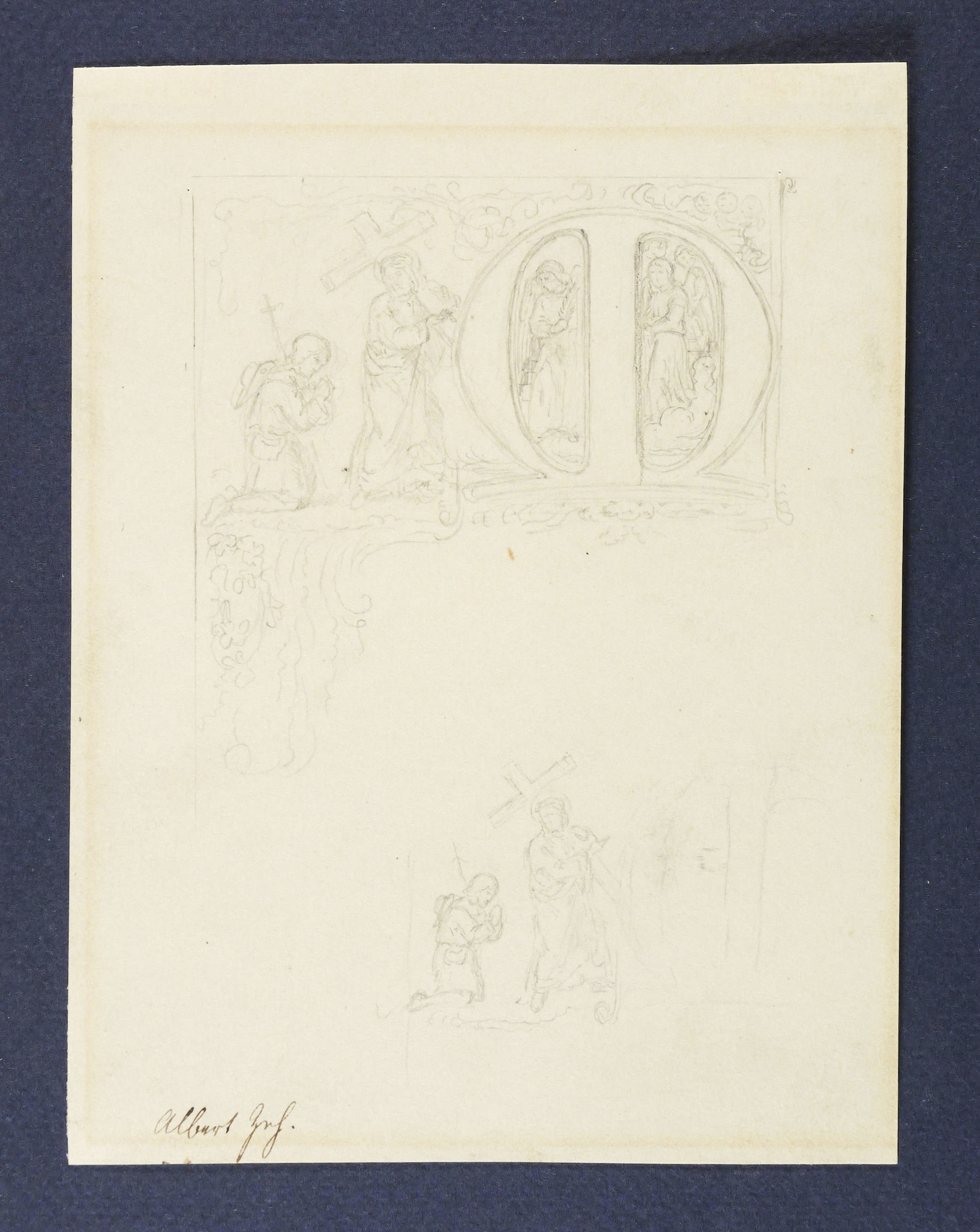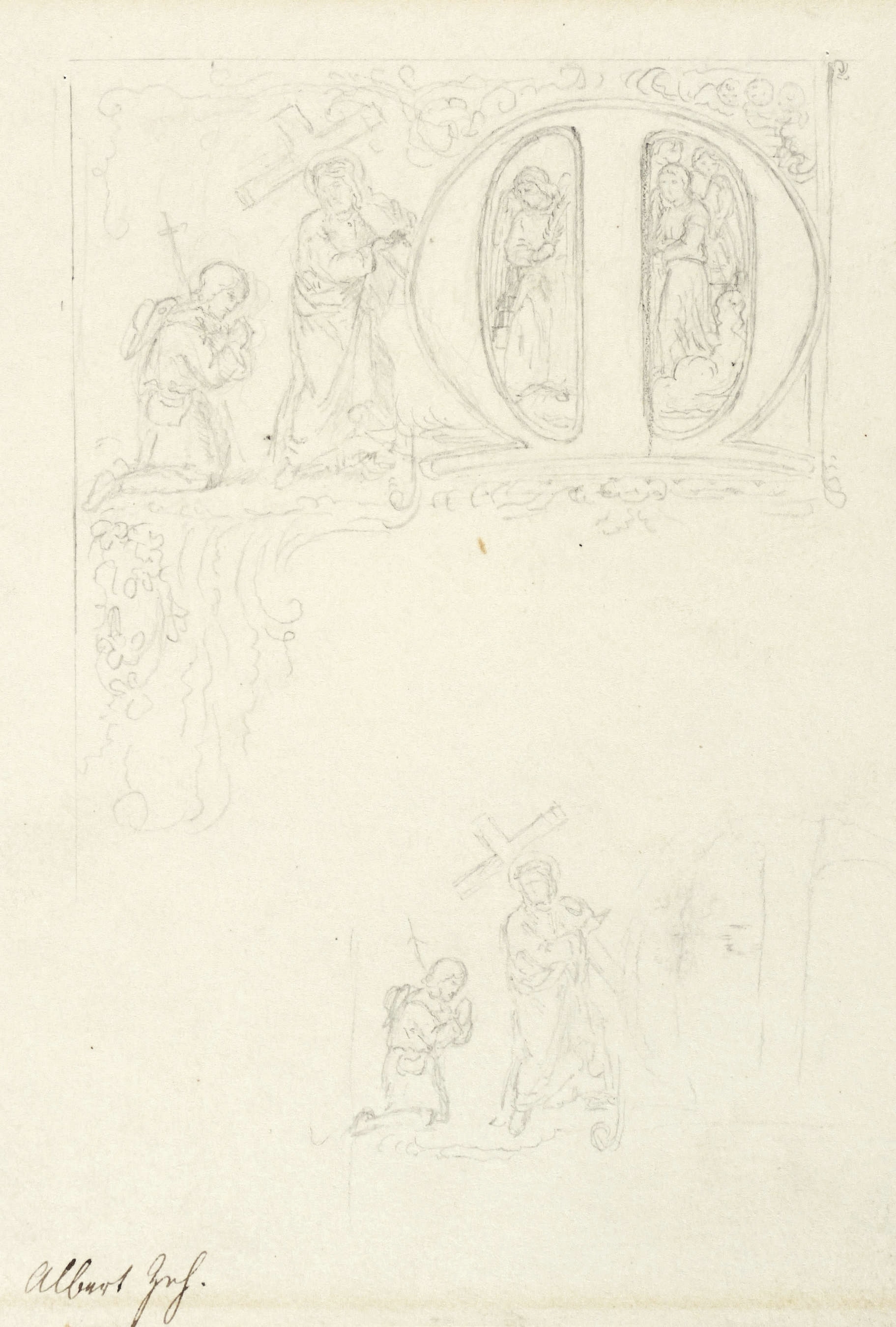 Zeh, Friedrich Albert. – „Initial-Entwürfe M mit Kreuztragung”.
