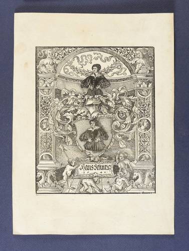 Aus: Hans Albrecht von Derschau, Holzschnitte alter deutscher Meister in den Original-Platten gesammelt von Hans Albrecht von Derschau (Gotha: Rudolph Zacharias Becker 1808-1816). – In der kleinen Schrifttafel unten Inschrift mit Datum: ″Hans Schw[..]cz 1542″. Verso in brauner Feder und Fraktur: ″Wol dem der ein gueten dreiZehner hat.″ In Bleistift modern weiter: ″Derschau-Druck″. – Später Nachdruck vom originalen Holzstock aus der Derschau-Sammlung. Hans Albrecht Freiherr von Derschau (1755-1824) hatte 1582 Holzstöcke des 15. und 16. Jh. gesammelt. In seinem Auftrag gab Rudolph Zacharias Becker 1808-16 Abdrucke von ausgewählten Stöcken in insgesamt vier Folgen (Klassen A-E) heraus. Seine Familie verkaufte die Holzstöcke 1844 an den Preußischen König, der sie dem Kupferstichkabinett Berlin überließ. Bei den sogenannten Derschau-Drucken handelt es sich meist um seltene Einblattdrucke. Sie wurden in niedrigen Auflagen gedruckt und sind oftmals die einzigen verfügbaren oder bekannten Abzüge. – Tadellos erhalten. Sehr guter Zustand.