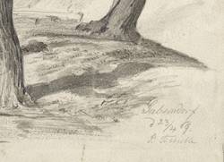 1869. Zeichnung / Bleistiftzeichnung, in grauer Tusche laviert, auf kräftigem chamois Velin. – Originale Künstlergrafik, von Paul Wilhelm Tübbecke. – Unikat. – 26,0 x 34,0 cm (Darstellung / Blatt).