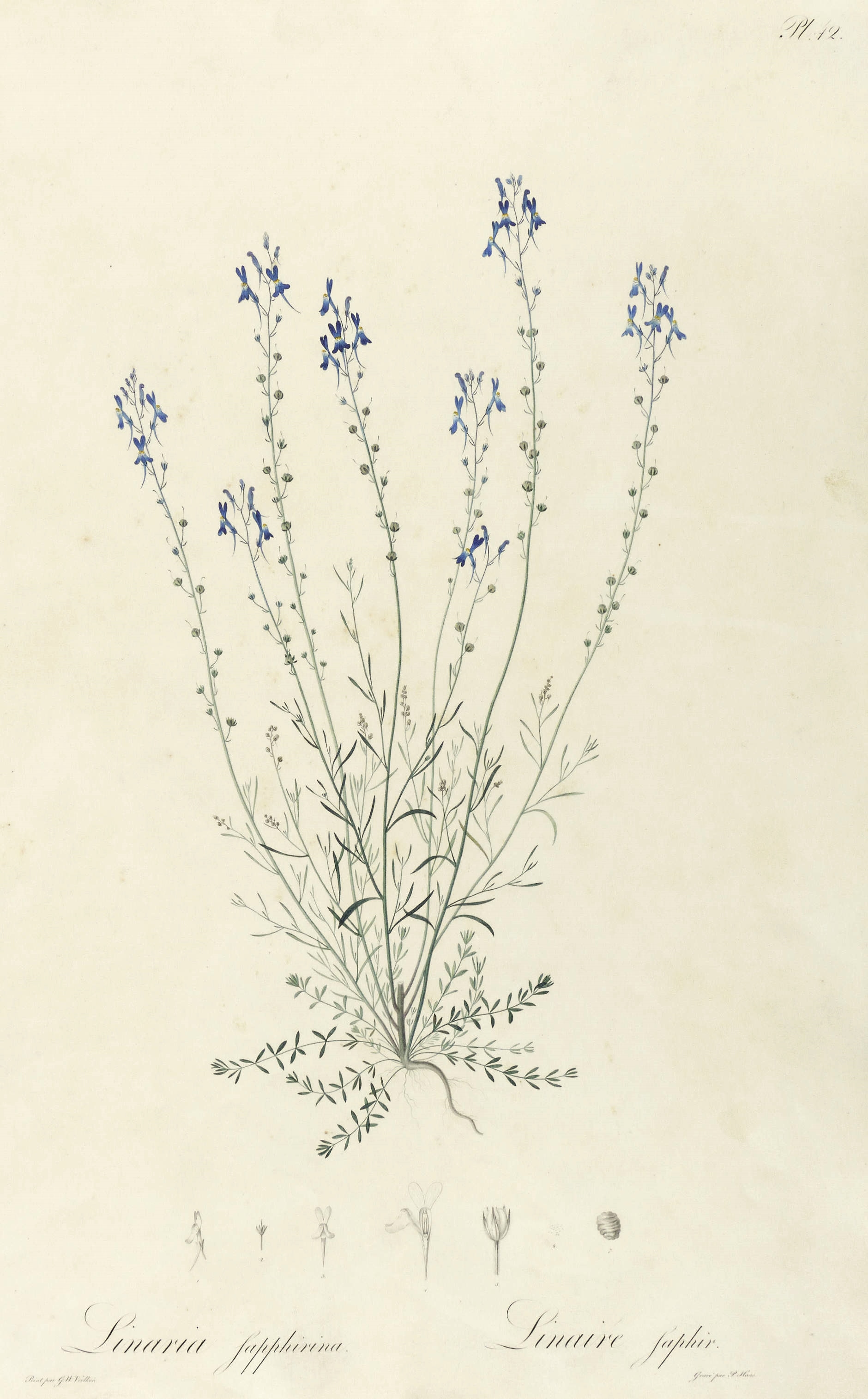Leinkraut. – Portugiesisches Leinkraut (Linaria Sapphirina). – Flore portugaise. – „Linaria sapphirina. Linaire saphir”.