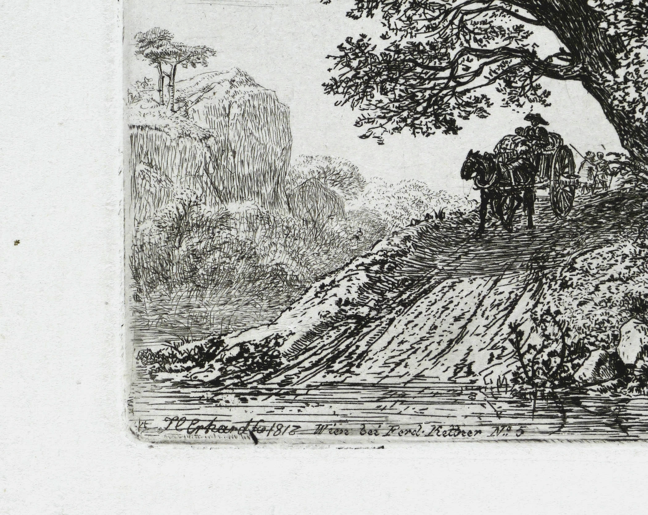 Apell 53 IV (von V). – In der Platte links unten signiert und datiert: ″JC Erhard fec. 1817″. Dazu die Verlegeradresse: ″Wien bei Ferd. Kettner No.5″. In der Blattecke links unten in Bleistift bezeichnet: ″A[pell]. 53 IV″. – Abzug vom IV. Zustand der Patte für den Verleger Ferdinand Kettner in Wien. – Provenienz: Sammlung Friedrich Julius Arndt (genannt Fritz Arndt, 1856-1919, Besitzer des Klosterguts Oberwartha bei Dresden), danach Sammlung Dr. Theodor Arndt, Dresden- Blasewitz. – Sehr guter Zustand.