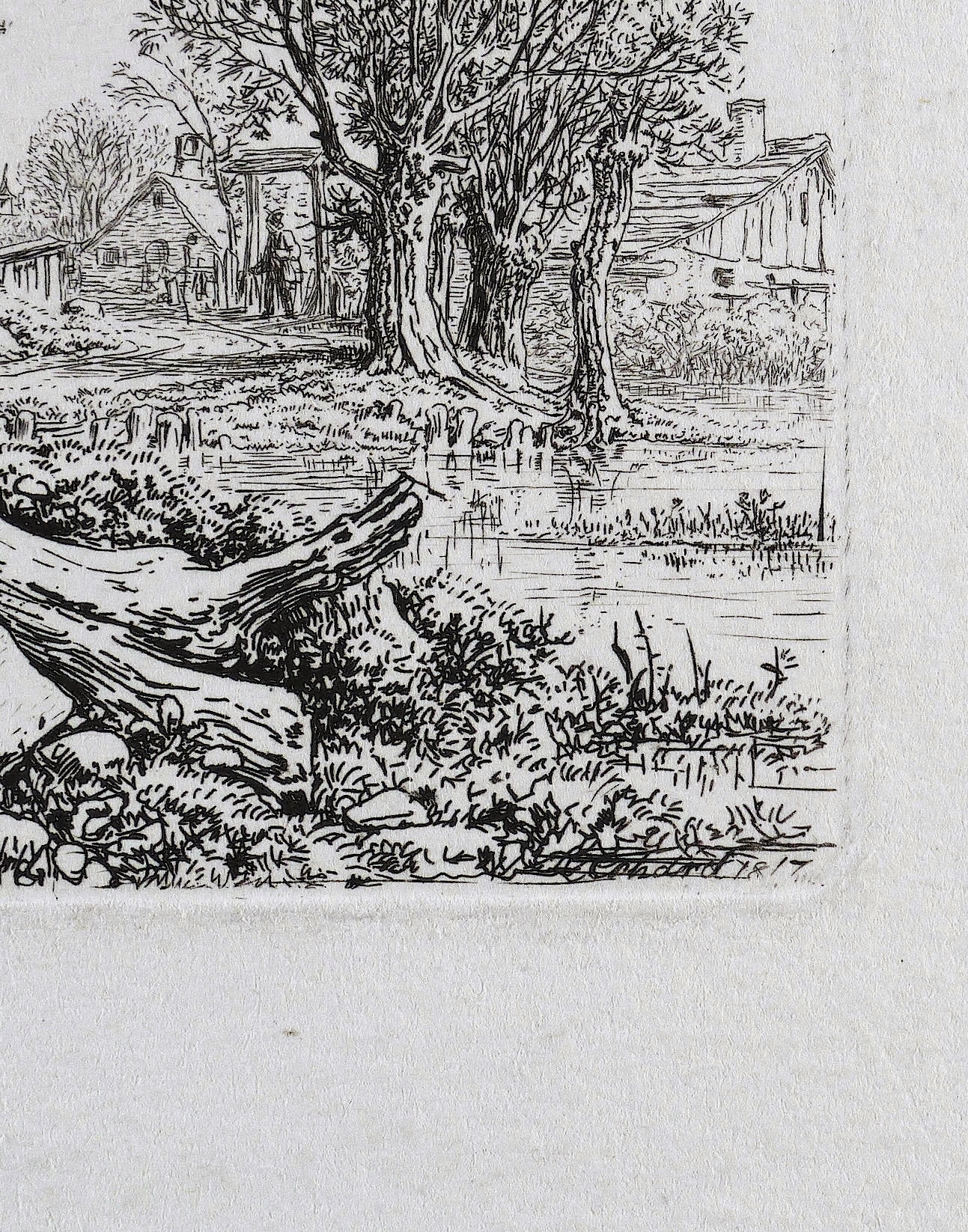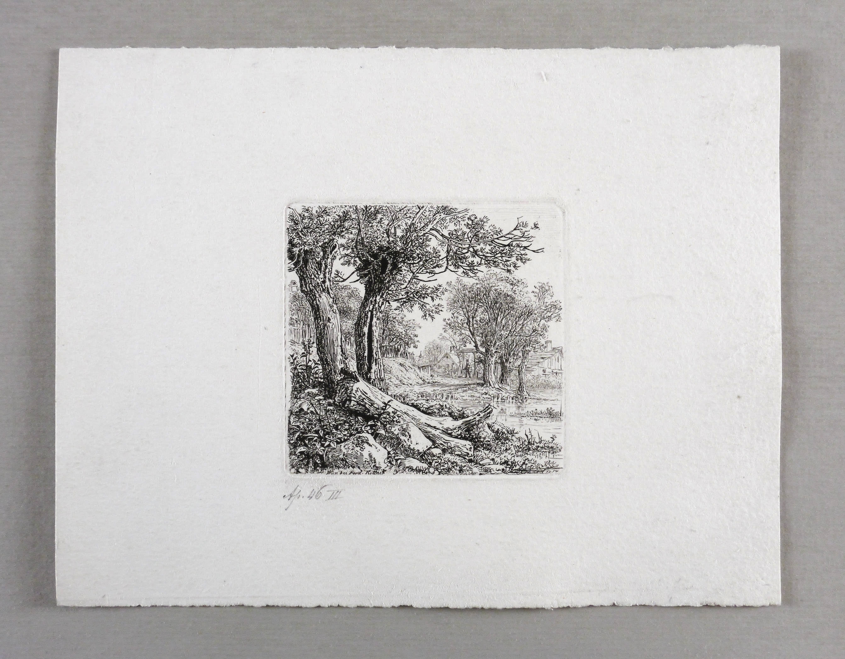Apell 46 III (von IV). – In der Platte rechts unten signiert und datiert: ″JC Erhard 1817″. Links gegenüber die Verlegeradresse: ″Wien bei Ferd. Kettner″. Daneben nochmals Signatur: ″JC Erhard″. Verso von Sammlerhand in Bleistift bezeichnet: ″BK // Ap[ell]. 46 III″. – Abzug vom dritten Zustand der Patte mit allen Vollendungen und der klaren Verlagsadresse von Ferdinand Kettner in Wien. Nicht die erst 1857 für Ferdinand Bauer in Wien gedruckte und häufiger kursierende vierte Fassung! – Sehr schönes Blatt. – Provenienz: Sammlung Friedrich Julius Arndt (genannt Fritz Arndt, 1856-1919, Besitzer des Klosterguts Oberwartha bei Dresden), danach Sammlung Dr. Theodor Arndt, Dresden-Blasewitz. – Tadellos. Sehr guter Zustand.
