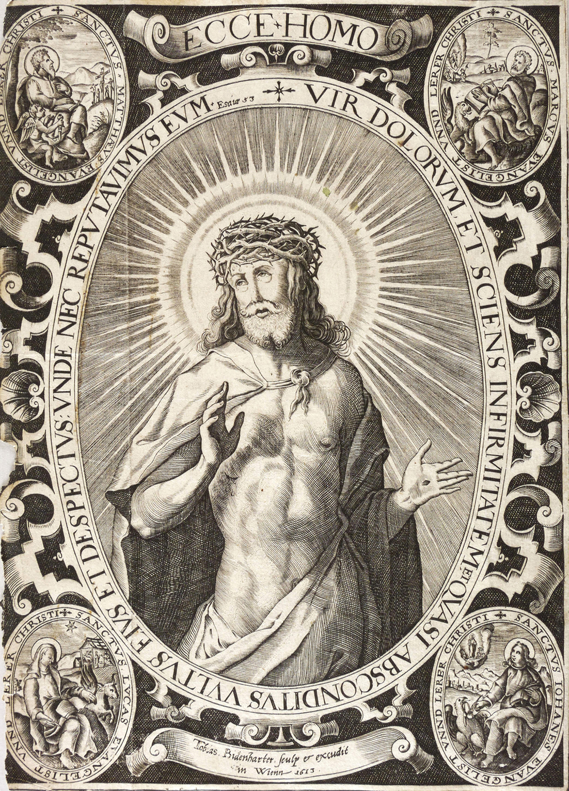 Tobias Bidenharter (erste Hälfte 17. Jh.). Deutscher Kupferstecher. 1598-1623 in Deutschland und Ungarn tätig. Man kennt von ihm Porträts der Kaiser Rudolf II. und Ferdinand II., zudem die Kopie eines Schmerzensmannes nach Dürer.