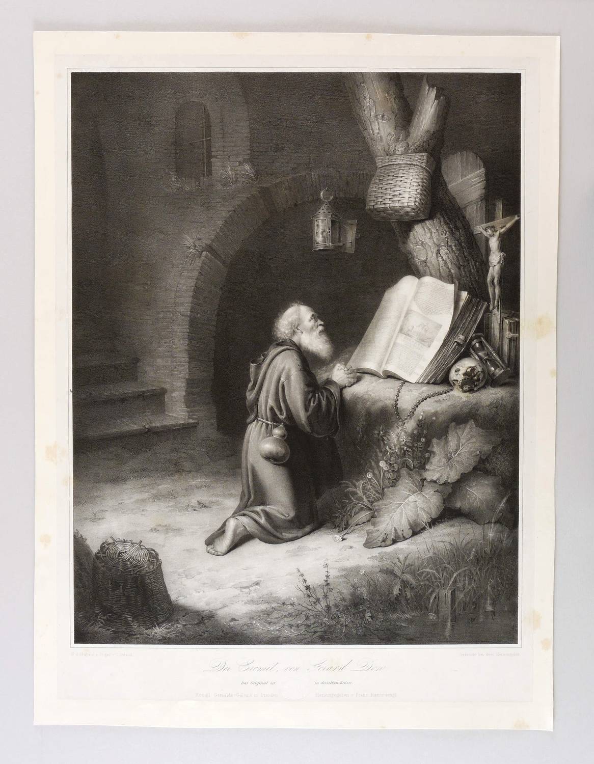 Aus: Franz Seraph Hanfstaengl, Die vorzüglichsten Gemälde der königlichen Gallerie in Dresden (Dresden: Hanfstaengl 1836-1846). – Links unten signiert: ″N. d. Original a. St. gez. v. C. Straub.″ Mittig betitelt. Trockenstempel der Königlichen Gemäldegalerie. – Karton im Randbereich vereinzelt leicht stockfleckig. Sonst guter Zustand.