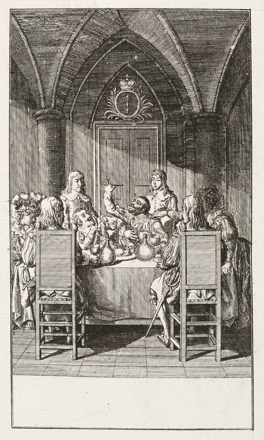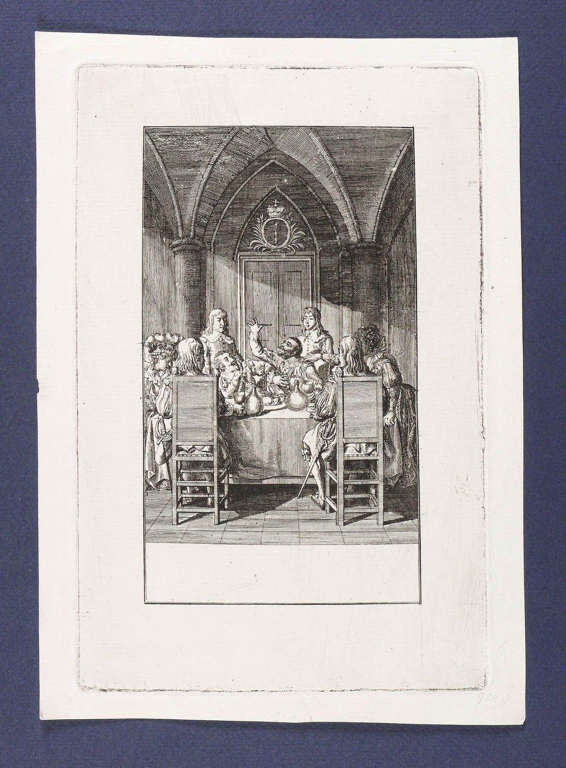 Bauer 1845. Engelmann 904. – Aus: Deutsche Monatsschrift (Leipzig: Sommer 1790-1799). – Verso zwei Sammlerstempel. Dazu diverse Sammlernotizen in Bleistift. – Abzug vor aller Schrift. Selten. - Die Darstellung zeigt den Kurfürsten in Gesellschaft an einer Tafel in dem Moment, als er gerade Prinz Wilhelm von Neuburg im Streit um Jülich-Cleve geohrfeigt hat. – Guter Erhaltungszustand.