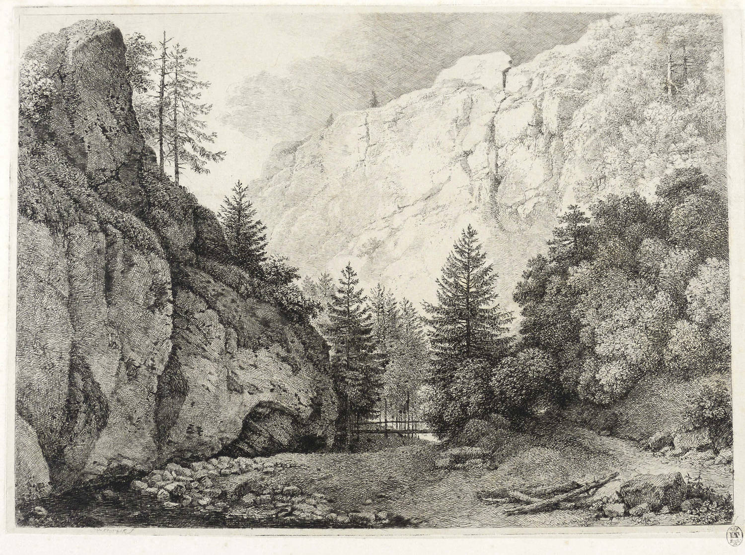 1848. Kupferstich / Radierung, auf aufgewalztem China. – Von Franz Xaver Rektorzik. – 19,2 x 26,5 cm (Platte), 26 x 32,5 cm (Blatt), 18,5 x 25,7 cm (Darstellung).