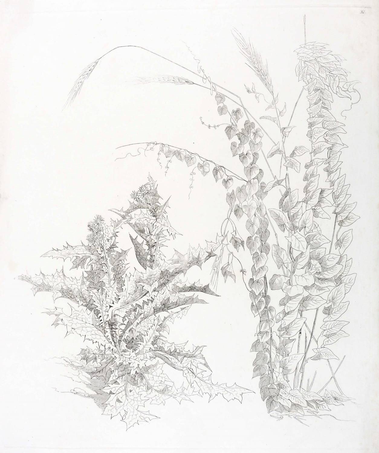Oben rechts nummeriert: ″XI.″ Unterhalb der Darstellung mit Blindstempel. – Blatt aus einer Folge von Landschaftsstudien als Vorlage für Landschaftszeichnung. – Blatt im unten leicht bestoßen und im rechten und linken Rand leicht angeschmutzt. Sonst guter Zustand.