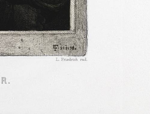 1898. Kupferstich / Radierung. – Originale Künstlergrafik, von Ludwig Friedrich. – 47 x 36 cm (Blatt), 29,6 x 23,1 cm (Platte), 22,5 x 17,0 cm (Darstellung).