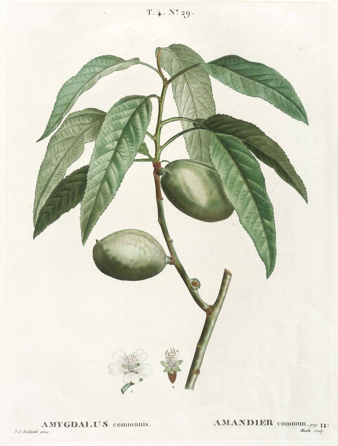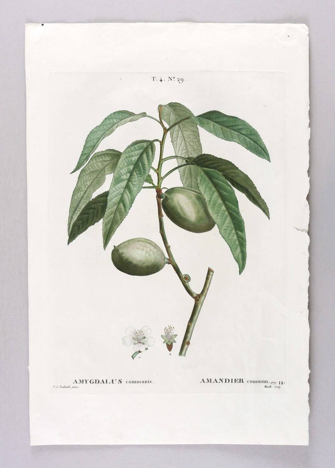 Aus: Henri Louis Duhamel de Monceau, Traité des Arbres et Arbustes que l'on cultivé en France en pleine terre (Paris: Michel 1801-1819). – Rechts unten signiert: ″Mixelle Sculp.″ Unterhalb der Darstellung zweisprachig bezeichnet. – Blatt unten rechts leicht knickspurig und Einriss im rechten Rand. Sonst guter Zustand.
