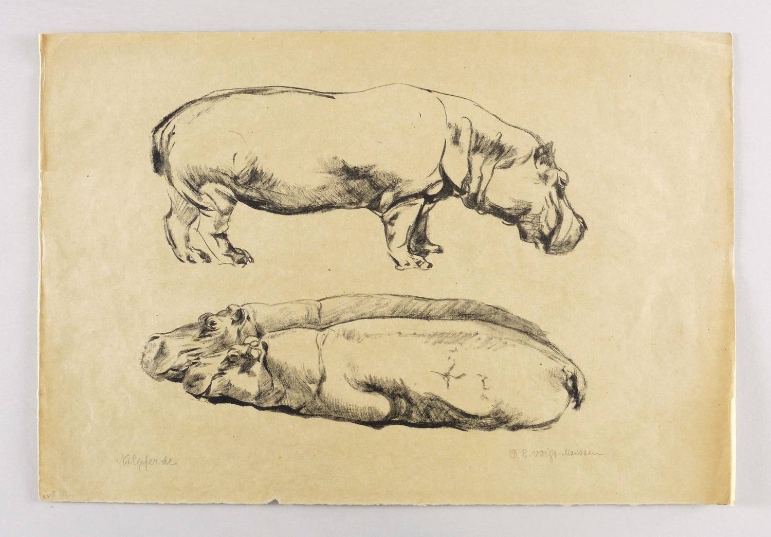 Otto Eduard Voigt (1870 Dresden - 1949 Meißen). Deutscher Keramiker und Grafiker in Meißen. Studierte an der Berliner Kunstschule und der Dresdner Akademie. Tätig an der Porzellanmanufaktur Meißen, dort v.a. Blumenstücke und Tiergrafik.