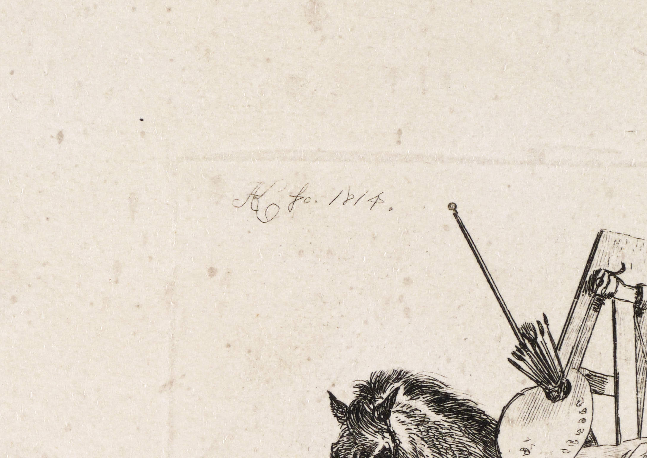 1814. Radierung / Strichätzung, auf aufgewalztem China. – Von Johann Adam Klein. – 23 x 27 cm (Blatt), 7,5 x 8,2 cm (Darstellung / Platte).