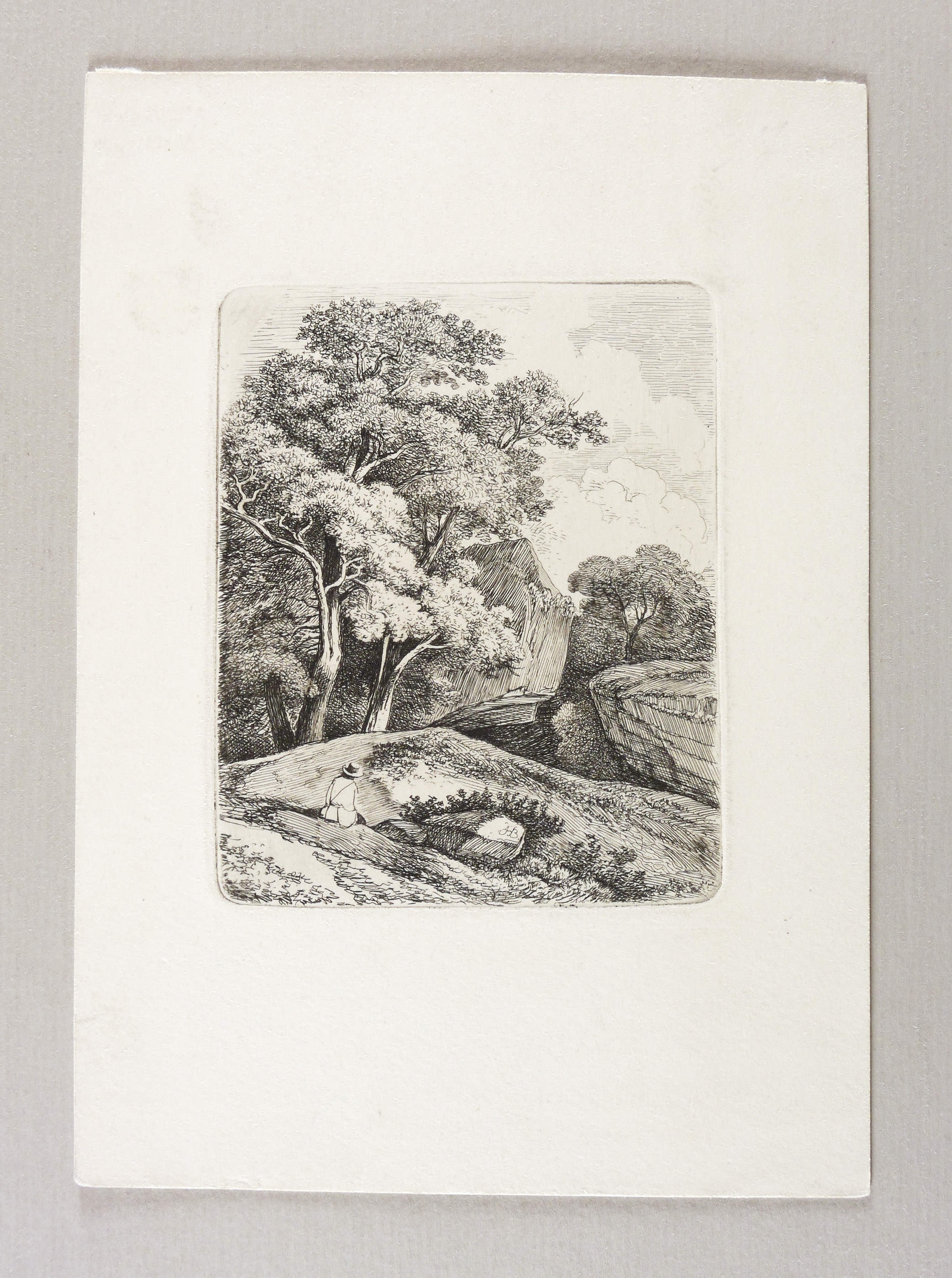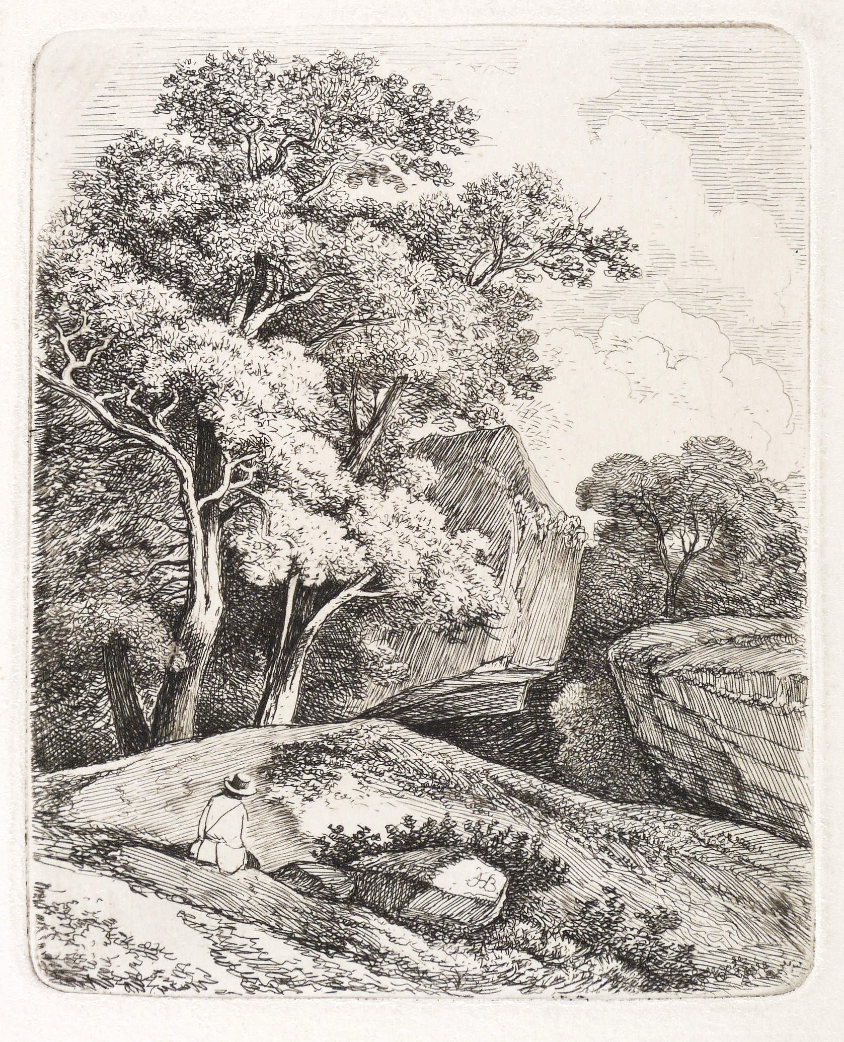 Deutscher Radierer. – „Felslandschaft mit Wanderer”.